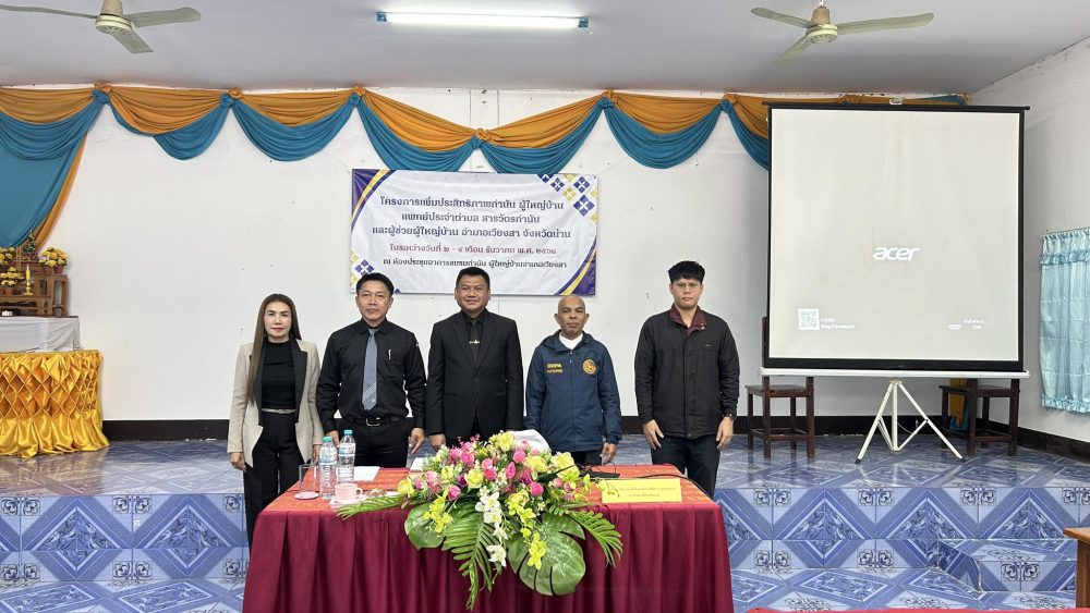 ในโครงการเพิ่มประสิทธิภาพ กำนัน ผู้ใหญ่บ้าน แพทย์ประจำตำบล สารวัตรกำนัน และผู้ช่วยผู้ใหญ่บ้าน อำเภอเวียงสา จังหวัดน่าน ณ ห้องประชุมอาคารชมรมกำนันผู้ใหญ่บ้าน อำเภอเวียงสา จังหวัดน่าน