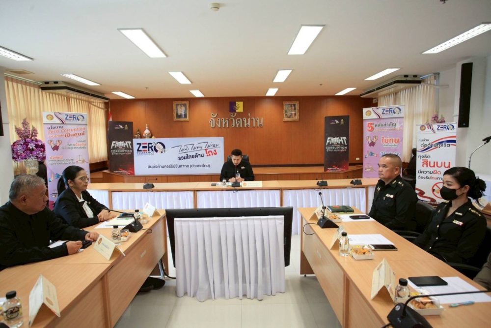 และรัฐมนตรีว่าการกระทรวงมหาดไทย เป็นประธานกลาง เพื่อปลุกพลังสังคมให้ “ไม่ทนต่อการทุจริต” ที่ ห้องประชุมพระเจ้าสุริยพงษ์ผริตเดช ชั้น 3 ศาลากลางจังหวัดน่าน