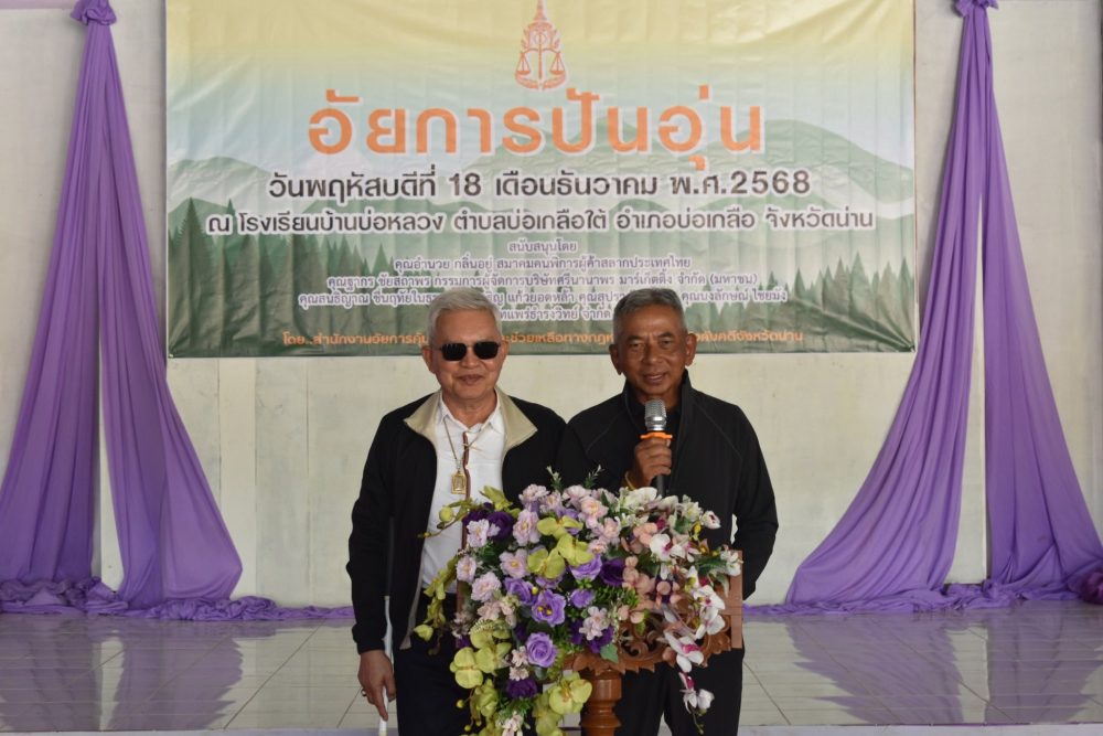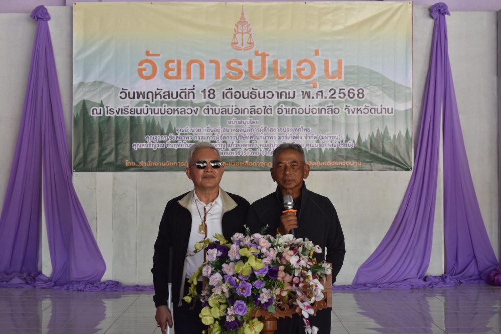 วันที่ 18 ธันวาคม 2568 สำนักงานอัยการคุ้มครองสิทธิและช่วยเหลือทางกฎหมายและการบังคับคดีจังหวัดน่าน ร่วมกับภาคีเครือข่าย สมาคมคนพิการผู้ค้าสลากประเทศไทย บริษัทศรีนานาพร มาร์เก็ตติ้ง จำกัด(มหาชน) บริษัทแพร่ธำรงวิทย์