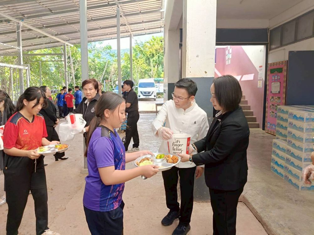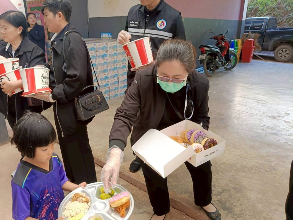 มอบอุปกรณ์กีฬา และเลี้ยงอาหารกลางวันเพื่อให้มีสุขภาพร่างกายที่แข็งแรง ได้รับประทานอาหารกลางวันที่ครบถ้วนตามหลักโภชนาการและมีสุขภาพจิตที่สมบูรณ์