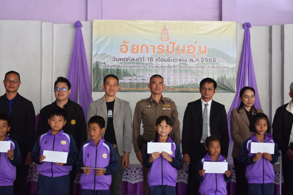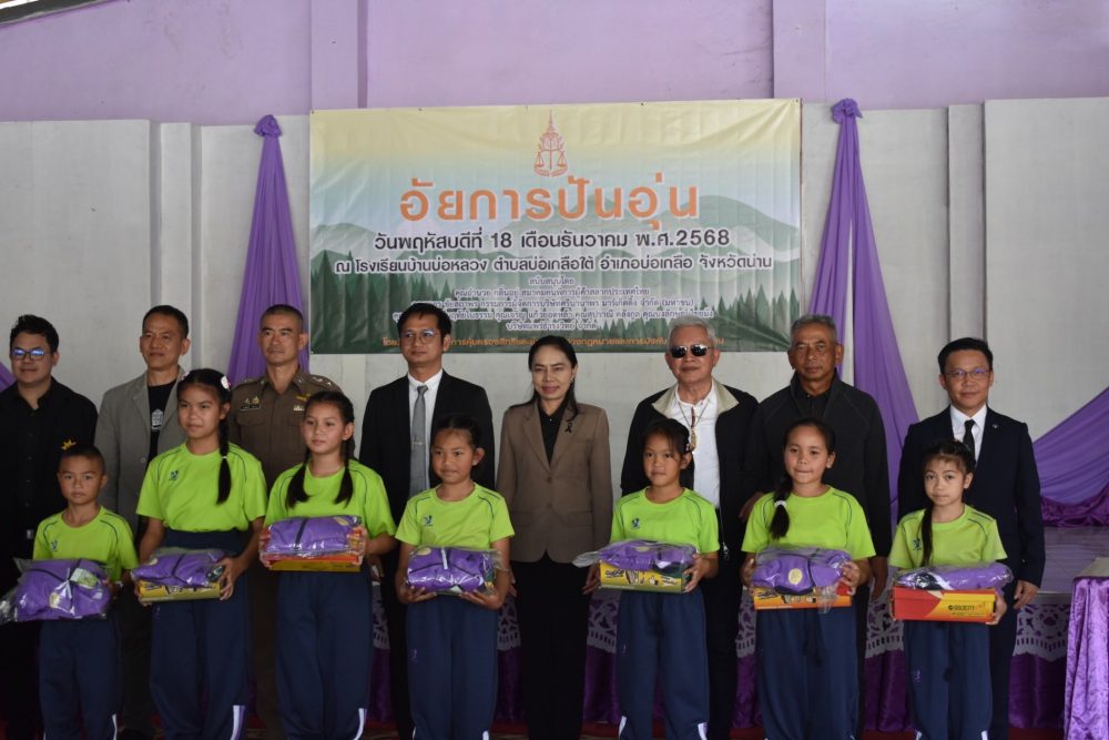 จัดโครงการ “อัยการปันอุ่น” มอบชุดกันหนาว รองเท้า จัดเลี้ยงอาหารกลางวันและมอบทุนการศึกษาให้แก่เด็กนักเรียนโรงเรียบ้านบ่อหลวง อำเภอบ่อเกลือ จังหวัดน่าน โรงเรียนบ้านบ่อหลวง เป็นสถานศึกษาขนาดกลาง ตั้งอยู่ในพื้นที่ตำบลบ่อเกลือใต้