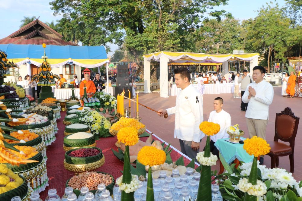 เข้าร่วมพิธีทำบุญ บวงสรวงสิ่งศักดิ์สิทธิ์ เจริญพระพุทธมนต์และถวายภัตตาหารพระสงฆ์ ณ หอประชุมนันทพัฒน์ ศาลากลางจังหวัดน่าน ศูนย์ราชการจังหวัดน่าน ตำบลไชยสถาน อำเภอเมืองน่าน จังหวัดน่าน