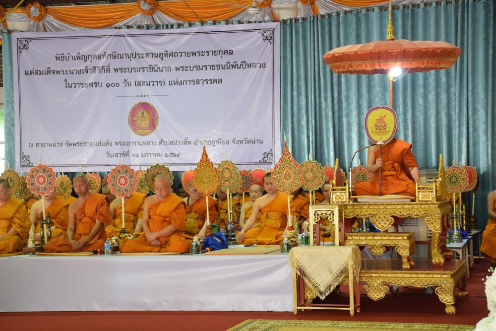 ถวายพระราชกุศล สมเด็จพระนางเจ้าสิริกิติ์ พระบรมราชินีนาถ พระบรมราชชนนีพันปีหลวง ณ ศาลาหลวง วัดพระธาตุแช่แห้ง พระอารามหลวง อำเภอภูเพียง จังหวัดน่าน