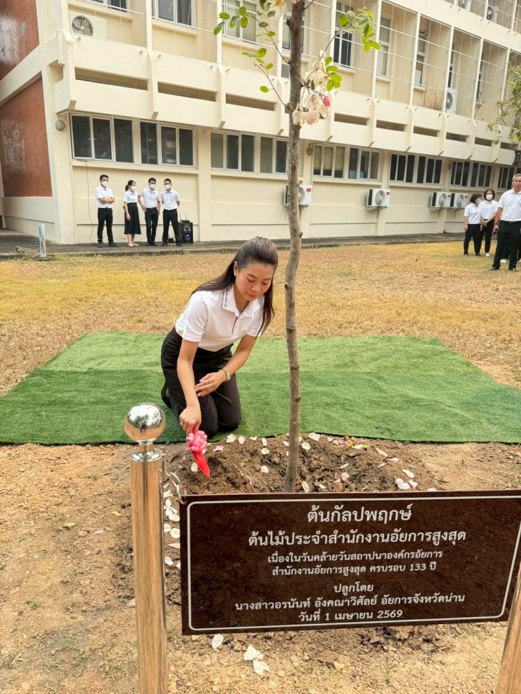 และการบังคับคดีจังหวัดน่าน และข้าราชการฝ่ายอัยการ และบุคลากรทุกคน ร่วมกันทำกิจกรรมปลูกต้นไม้ประจำสำนักงานอัยการสูงสุด (ต้นกัลปพฤกษ์) เนื่องในวันสถาปนาองค์กรอัยการครบรอบ 133 ปี