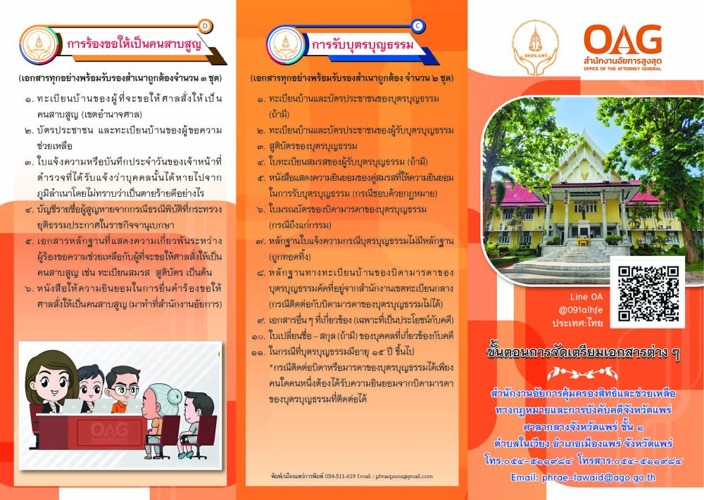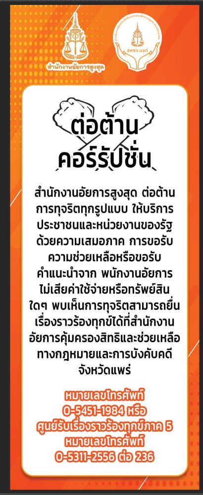 ขอเชิญชวนประชาชนทำความรู้จักกับสำนักงานอัยการคุ้มครองสิทธิและช่วยเหลือทางกฎหมายและการบังคับคดีจังหวัดแพร่