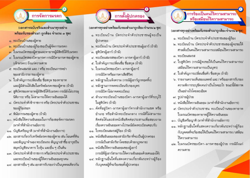 - หนังสือให้ความยินยอมในการยื่นคำร้องขอให้ศาลสั่งให้เป็นคนสาญสูญ (มาทำที่สำนักงานอัยการ)