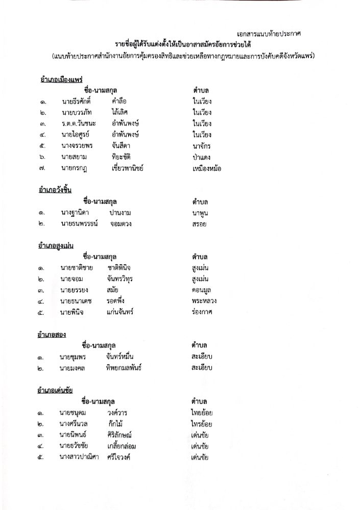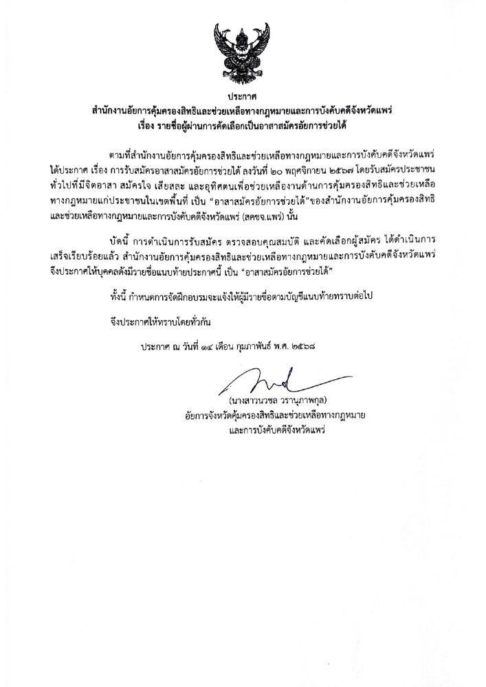 อัยการจังหวัดคุ้มครองสิทธิฯ จังหวัดแพร่