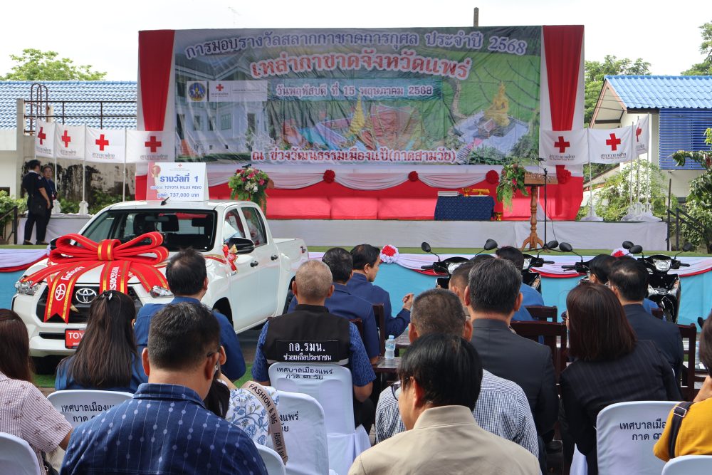 เหล่ากาชาดจังหวัดแพร่ได้ดำเนินการจัดกิจกรรมเพื่อหารายได้ของเหล่ากาชาดจังหวัดแพร่ ประจำปีงบประมาณ 2568 เพื่อนำไปสนับสนุนด้านสาธารณกุศล ช่วยเหลือบรรเทาทุกข์แก่ผู้ยากไร้ ผู้ป่วยขาดแคลนต่างๆ ด้วยการจัดทำสลากกาชาดการกุศลประจำปี 2568 จำนวน 100,000 ฉบับ จำหน่ายในราคาฉบับละ 60 บาท และได้มีการหมุนรางวัลไปแล้วเมื่อวันที่ 30 เมษายน 2568 ที่บริเวณกาดสามวัยเทศบาลเมืองแพร่ นั้น