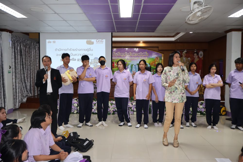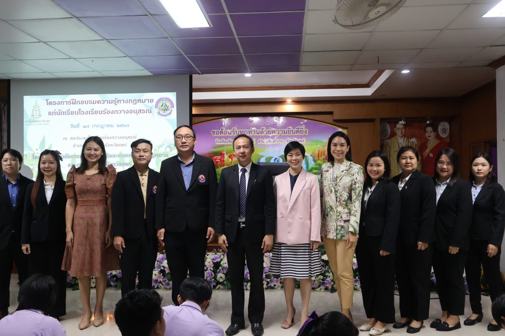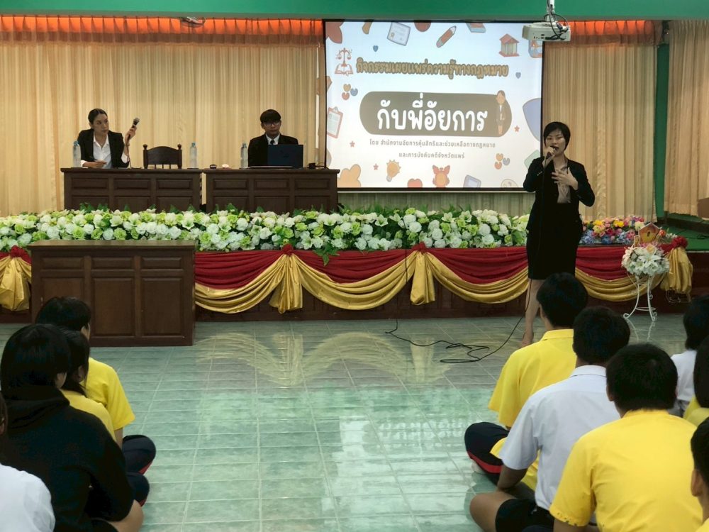 30 ก.ค. 2568 เวลา 08.30 – 09.20 น. ท่านฉลวย กาญจนไตรภพ ตำแหน่ง อัยการจังหวัดประจำสำนักงานอัยการสูงสุด และท่านจิตรินทร์ ชาติพันธ์ ตำแหน่ง รองอัยการจังหวัด พร้อมบุคลากร ได้เดินทางไปจัดกิจกรรมเผยแพร่ให้ความรู้ทางกฎหมายแก่นักเรียน ระดับชั้นมัธยมศึกษาตอนปลาย (ม.6) โรงเรียนม่วงไข่พิทยาคม อำเภอหนองม่วงไข่ จังหวัดแพร่