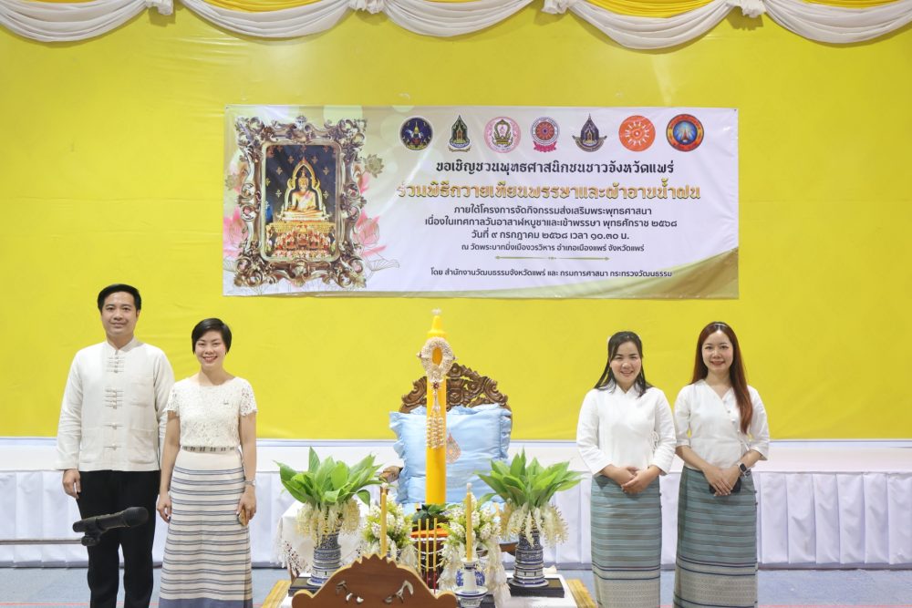 10 ก.ค. 2568 เวลา 07.00 น. ท่านจิตรินทร์ ชาติพันธ์ รองอัยการจังหวัด สำนักงานอัยการคุ้มครองสิทธิฯ จังหวัดแพร่ พร้อมด้วยบุคลากร เข้าร่วมงานเนื่องในเทศกาลวันอาสาฬบูชา และวันเข้าพรรษา ประจำปี 2568 ณ วัดพระบาทมิ่งเมืองวรวิหาร ตำบลในเวียง อำเภอเมืองแพร่ จังหวัดแพร่