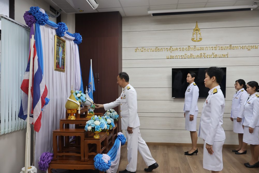 2 มี.ค. 2569 เวลา 07.30 น. นางสาวฉลวย กาญจนไตรภพ อัยการจังหวัดประจำสำนักงานอัยการสูงสุด สำนักงานอัยการคุ้มครองสิทธิฯ จังหวัดแพร่ เข้าร่วมงานพิธีวางพานพุ่มดอกไม้สด เนื่องในวันพระบิดาแห่งมาตรฐานการช่างไทย ประจำปี 2569 ณ ศูนย์ประชุมและแสดงศิลปวัฒนธรรมล้านนาตะวันออกและกลุ่มประเทศ GMS ตำบลทุ่งโฮ้ง อำเภอเมืองแพร่ จังหวัดแพร่