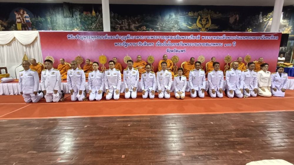 13 ต.ค. 2568 ท่านฉลวย กาญจนไตรภพ อัยการจังหวัดประจำสำนักงานอัยการสูงสุด สำนักงานอัยการคุ้มครองสิทธิฯ จังหวัดแพร่ พร้อมด้วยบุคลากร เข้าร่วมพิธีทำบุญตักบาตรถวายพระราชกุศลและวางพวงมาลา เนื่องในวัน “นวมินทรมหาราช” ซึ่งตรงกับวันคล้ายวันสวรรคตของ พระบาทสมเด็จพระบรมชนกาธิเบศร มหาภูมิพลอดุลยเดชมหาราช บรมนาถบพิตร ณ ศูนย์ประชุมและแสดงศิลป วัฒนธรรมล้านนาตะวันออก และกลุ่มประเทศ GMS ตำบลทุ่งโฮ้ง อำเภอเมืองแพร่ จังหวัดแพร่