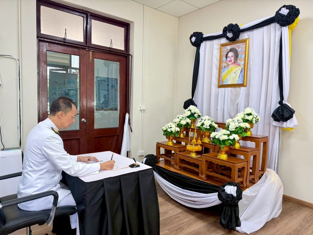 พระฉายาลักษณ์ สมเด็จพระนางเจ้าสิริกิติ์ พระบรมราชินีนาถ พระบรมราชชนนีพันปีหลวง พร้อมลงนามถวายความอาลัย และร่วมพิธีสวดพระอภิธรรมด้วยความสำนึกในพระมหากรุณาธิคุณเป็นล้นพ้น อันหาที่สุดมิได้
