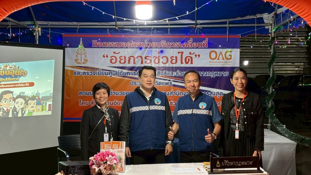 24 ก.พ. 2569 นางสาวฉลวย กาญจนไตรภพ อัยการจังหวัดประจำสำนักงานอัยการสูงสุด และนางสาวจิตรินทร์ ชาติพันธ์ รองอัยการจังหวัด พร้อมด้วยบุคลากร ออกตรวจเยี่ยมศูนย์อัยการคุ้มครองสิทธิฯ ณ เทศบาลเวียงต้า อำเภอลอง จังหวัดแพร่ เพื่อเป็นการอำนวยความสะดวกแก่ประชาชนในพื้นที่ ให้ความช่วยเหลือปัญหาด้านกฎหมายแก่ประชาชน เช่น การร้องขอให้ศาลมีคำสั่งตั้งเป็นผู้จัดการมรดก, การตั้งเป็นผู้ปกครองผู้เยาว์, การร้องขอให้ศาลสั่งให้เป็นคนสาบสูญหรือ ให้บุคคลใดเป็นไร้ความสามารถ/เสมือนไร้ความสามารถ หนี้นอกระบบ กฎหมายที่ดิน ฯลฯ เป็นต้น