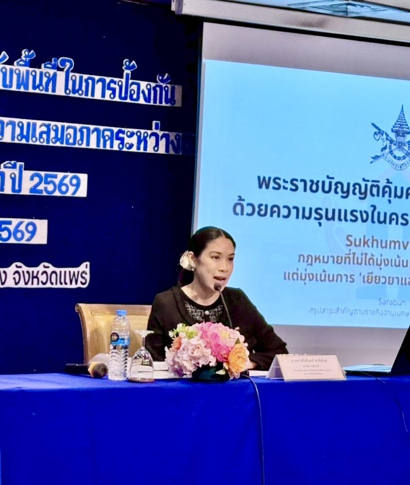 19 ก.พ. 2569 เวลา 10.00 – 11.00 น. ท่านจิตรินทร์ ชาติพันธ์ รองอัยการจังหวัด สำนักงานอัยการคุ้มครองสิทธิและช่วยเหลือทางกฎหมายและการบังคับคดีจังหวัดแพร่ เป็นวิทยากรบรรยาย ให้กับสำนักงานพัฒนาสังคมและความมั่นคงของมนุษย์จังหวัดแพร่ เรื่อง “หยุดทำร้าย! กฎหมายช่วยได้ รู้ทันกฎหมายและสิทธิสวัสดิการ เพื่อยุติความรุนแรงในครอบครัว” ณ ห้องนคราพาวิเลียน ชั้น 2 โรงแรมแพร่นครา ตำบลในเวียง อำเภอเมืองแพร่ จังหวัดแพร่