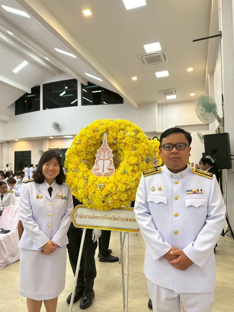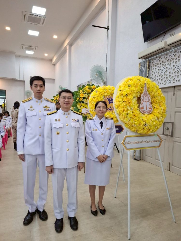 วันศุกร์ที่ ๑๔ พฤศจิกายน ๒๕๖๘ เวลา ๐๗.๐๐ นาฬิกา นายจรินทร์ รังแก้ว อัยการจังหวัดกำแพงเพชร ได้มอบหมายให้ นายพัชระ ชนะสาร รองอัยการจังหวัด พร้อมคณะข้าราชการ สำนักงานอัยการจังหวัดกำแพงเพชร เข้าร่วมพิธีวางพานพุ่มดอกไม้สด เนื่องในวันพระบิดาแห่งฝนหลวง ประจำปี ๒๕๖๘ ณ หอประชุมใหญ่ ศูนย์ราชการจังหวัดกำแพงเพชร ตำบลหนองปลิง อำเภอเมืองกำแพงเพชร จังหวัดกำแพงเพชร