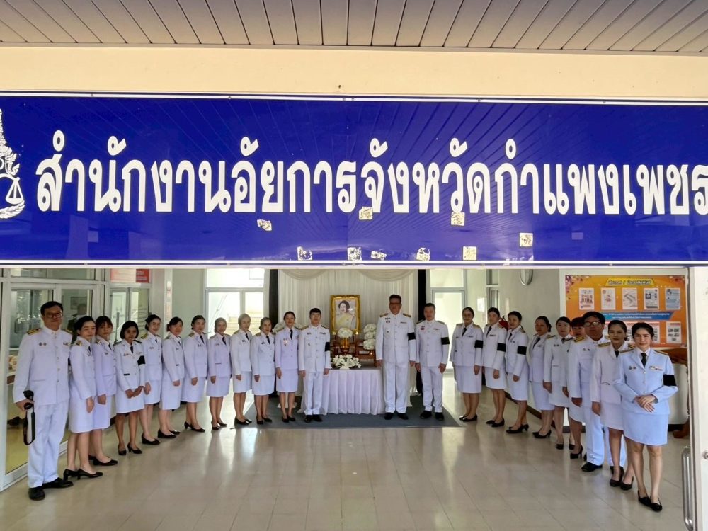 วันพุธที่ ๖ สิงหาคม ๒๕๖๘ เวลา ๐๙.๐๐ นาฬิกา นายจรินทร์ รังแก้ว อัยการจังหวัดกำแพงเพชร นายสุปรีดา ชื่นชม อัยการจังหวัดคดีเยาวชนและครอบครัวจังหวัดกำแพงเพชร นายพัฒนา เอี่ยมสุภาษิต อัยการจังหวัดคุ้มครองสิทธิและช่วยเหลือทางกฎหมายและการบังคับคดีจังหวัดกำแพงเพชร คณะอัยการ และข้าราชการธุรการจังหวัดกำแพงเพชร เข้าร่วมพิธีถวายพระพรชัยมงคล สมเด็จพระนางเจ้าสิริกิติ์ พระบรมราชินีนาถ พระบรมราชชนนีพันปีหลวง เนื่องในโอกาสวันเฉลิมพระชนมพรรษา ๑๒ สิงหาคม ๒๕๖๘ เพื่อเป็นการถวายความจงรักภักดีและสำนึกในพระมหากรุณาธิคุณ ณ ห้องโถง ชั้น ๑ สำนักงานอัยการจังหวัดกำแพงเพชร