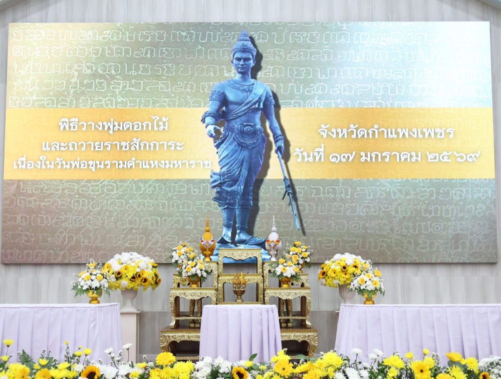 วันเสาร์ที่ ๑๗ มกราคม ๒๕๖๙ เวลา ๐๘.๐๐ นาฬิกา นายจรินทร์ รังแก้ว อัยการจังหวัดกำแพงเพชร ได้มอบหมายให้ นางสาวกานต์สิรี โสภณพนา อัยการจังหวัดผู้ช่วย พร้อมคณะข้าราชการ เข้าร่วมพิธีวางพานพุ่มดอกไม้สด เพื่อถวายราชสักการะ เนื่องใน “วันพ่อขุนรามคำแหงมหาราช” ณ หอประชุมใหญ่ ศูนย์ราชการจังหวัดกำแพงเพชร อำเภอเมืองกำแพงเพชร จังหวัดกำแพงเพชร