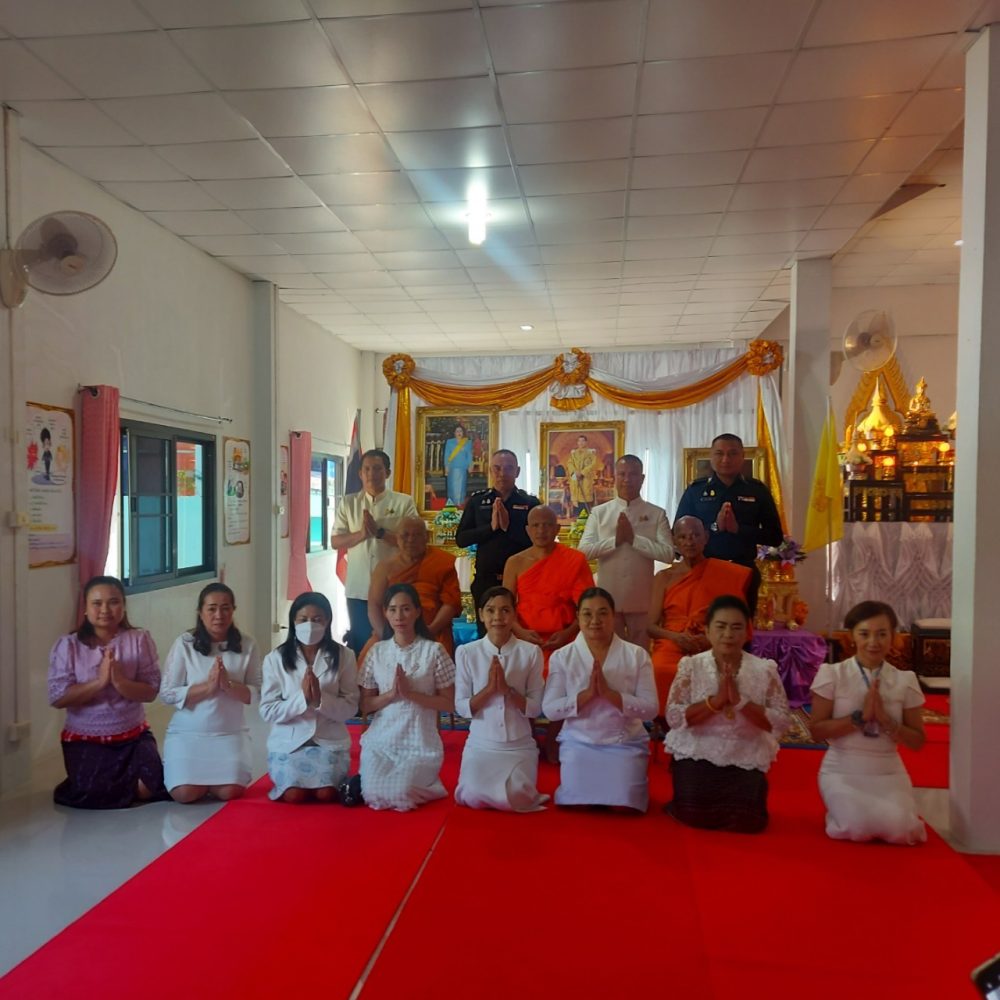 “พิธีสวดพระพุทธมนต์ทำบุญตักบาตรถวายพระราชกุศล และพิธีวางพวงมาลาเนื่องในวันนวมินทรมหาราช “