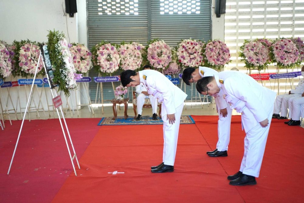 พิธีน้อมรำลึกถึงพระมหากรุณาธิคุณและวางพานพุ่มดอกไม้สด