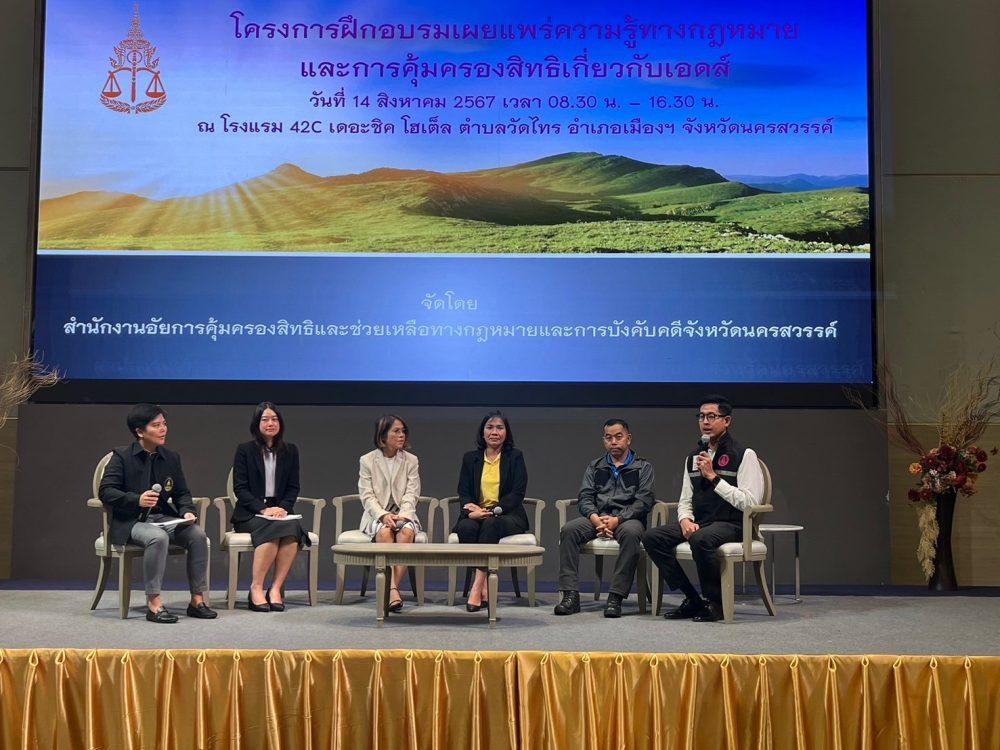 วันที่ 14 สิงหาคม 2567 เวลา 08.30 น – 16.30 น สำนักงานอัยการคุ้มครองสิทธิและช่วยเหลือทางกฎหมายและการบังคับคดีจังหวัดนครสวรรค์ จัดโครงการฝึกอบรมเผยแพร่ความรู้ทางกฎหมายและการคุ้มครองสิทธิเกี่ยวกับเอดส์ ณ โรงแรม 42C เดอะชิค โฮเต็ล ตำบลวัดไทร