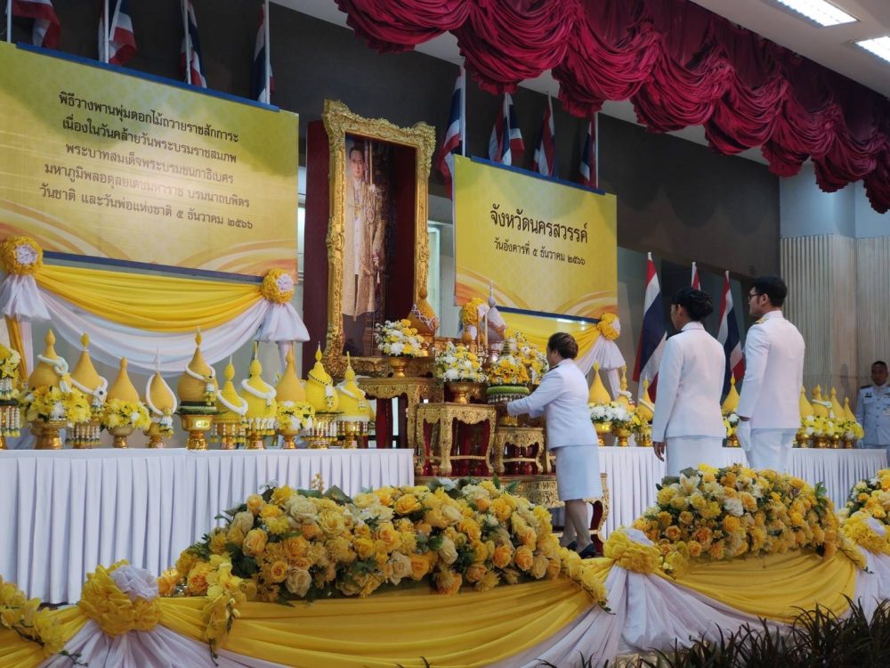 ร่วมพิธีทำบุญตักบาตรถวายเป็นพระราชกุศล พิธีวางพานพุ่มและพิธีถวายบังคมเนื่องในวันคล้ายวันพระบรมราชสมภพ พระบาทสมเด็จพระบรมชนกาธิเบศร มหาภูมิพลอดุลยเดชมหาราช บรมนาถบพิตร วันชาติ และวันพ่อแห่งชาติ ในจันทร์ที่ 5 ธันวาคม 2565 ณ ณ อาคารโดมอเนกประสงค์ มหาวิทยาลัยราชภัฎนครสวรรค์