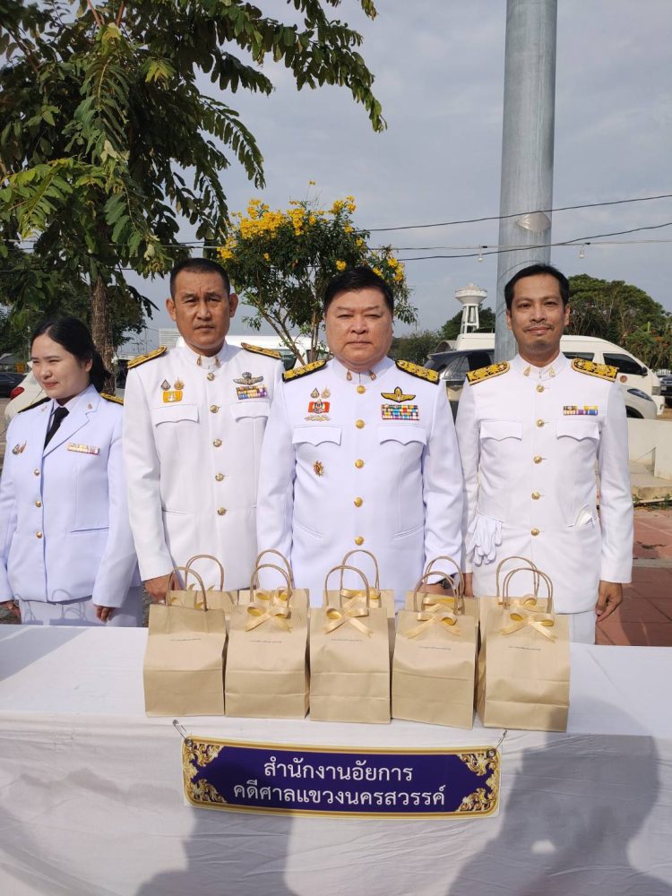พันตำรวจตรีมนูญศักดิ์  ทองรุ่ง อัยการจังหวัดประจำสำนักงานอัยการสูงสุด สำนักงานอัยการคดีศาลแขวงนครสวรรค์ พร้อมข้าราชการฝ่ายอัยการ