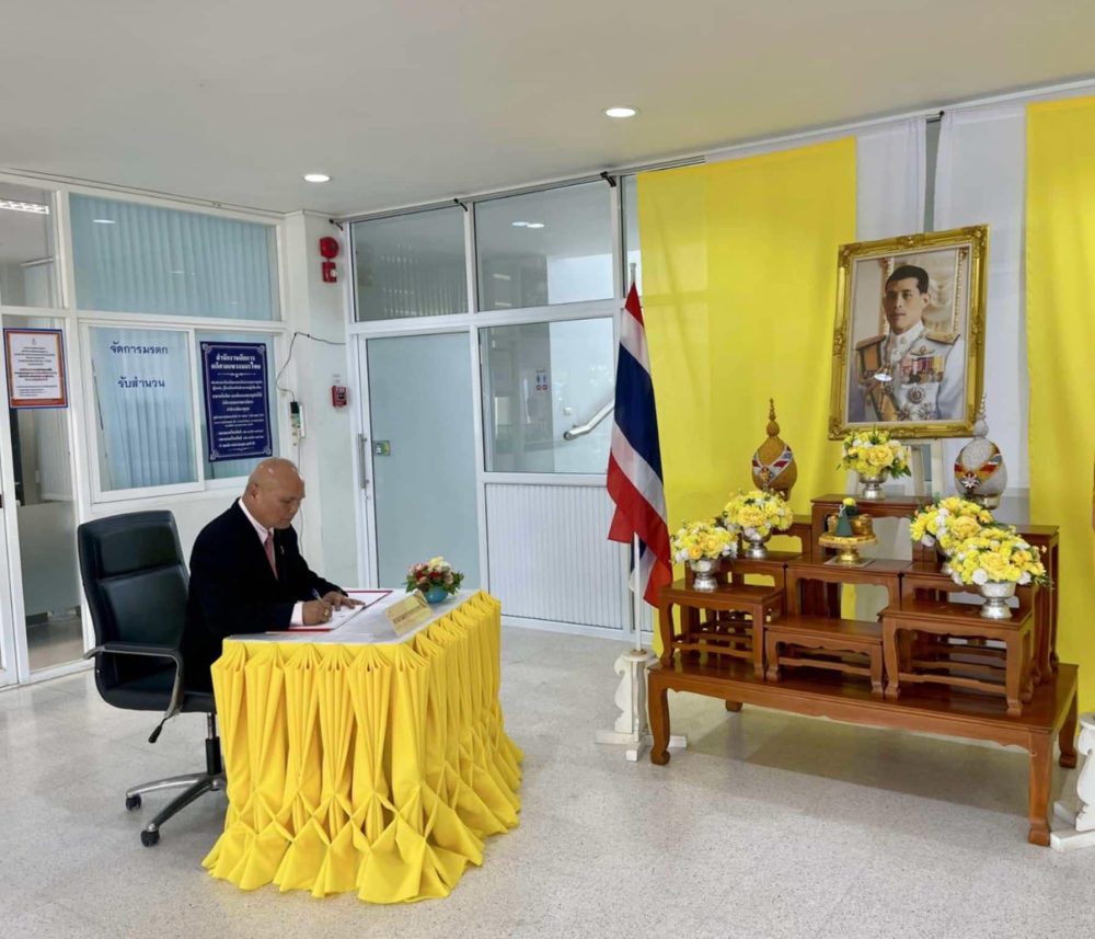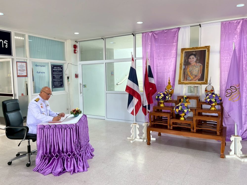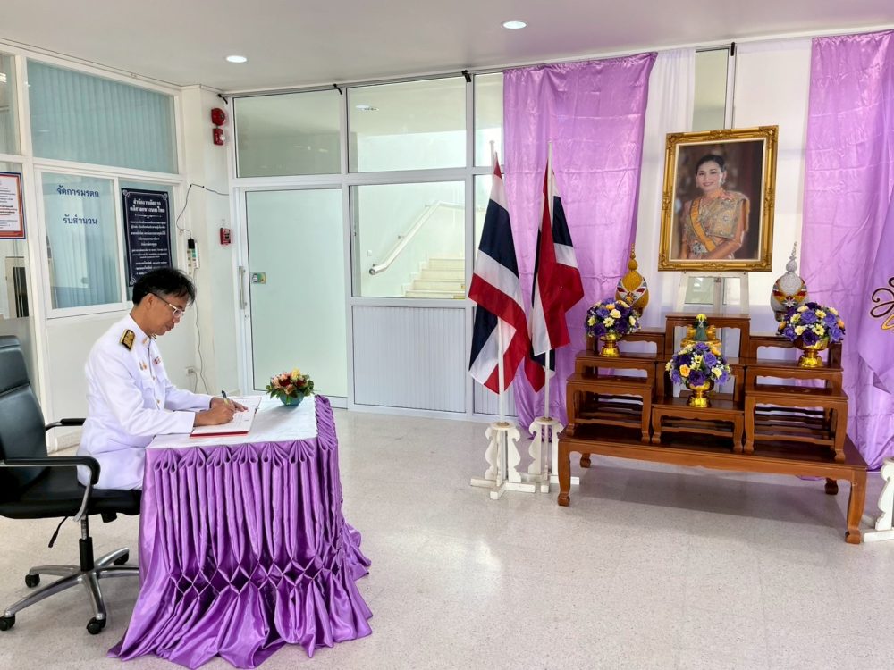 นายธเนศ ทองไทย ตำแหน่ง อัยการจังหวัดคดีศาลแขวงนครไทย นำข้าราชการอัยการ ข้าราชการธุรการ ลงนามถวายความอาลัยสมเด็จพระนางเจ้าสิริกิติ์ พระบรมราชินีนาถ พระบรมราชชนนีพันปีหลวง เพื่อเป็นการน้อมสำนึกในพระมหากรุณาธิคุณเป็นล้นพ้นอันหาที่สุดมิได้ ณ สำนักงานอัยการคดีศาลแขวงนครไทย