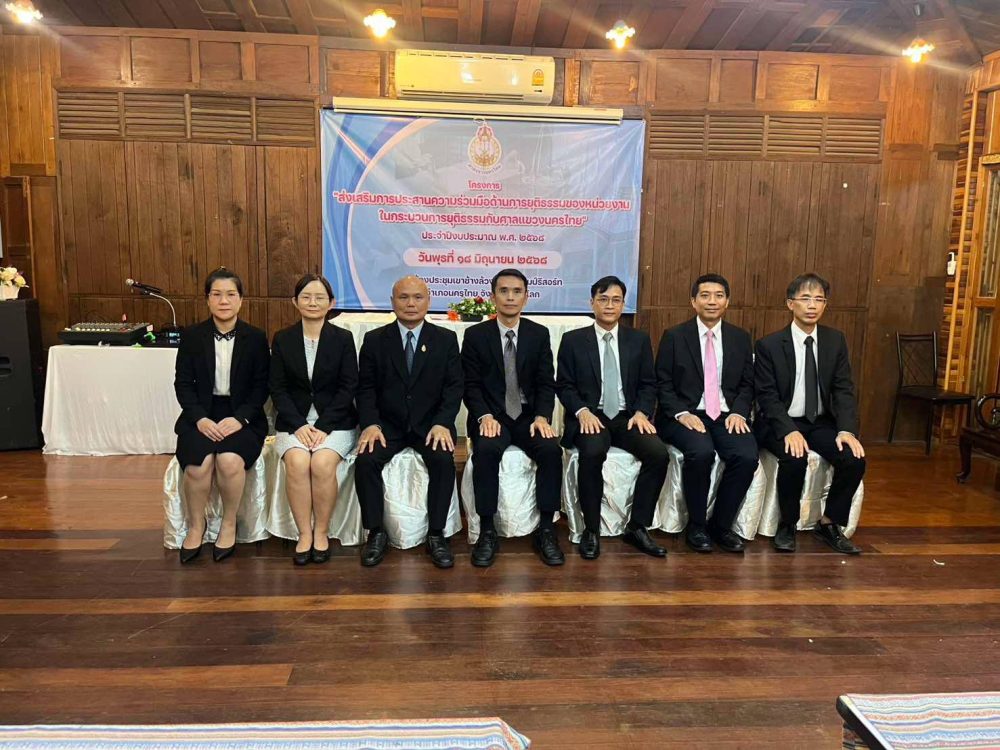 นายไพโรจน์ แสงธรรม อัยการจังหวัดคดีศาลแขวงนครไทย พร้อมคณะอัยการ ร่วมประชุมสัมมนาโครงการส่งเสริมการประสานความร่วมมือด้านการยุติธรรมของหน่วยงานในกระบวนการยุติธรรมกับศาลแขวงนครไทย ณ ห้องประชุมเขาช้างล้วง อำเภอนครไทย จังหวัดพิษณุโลก