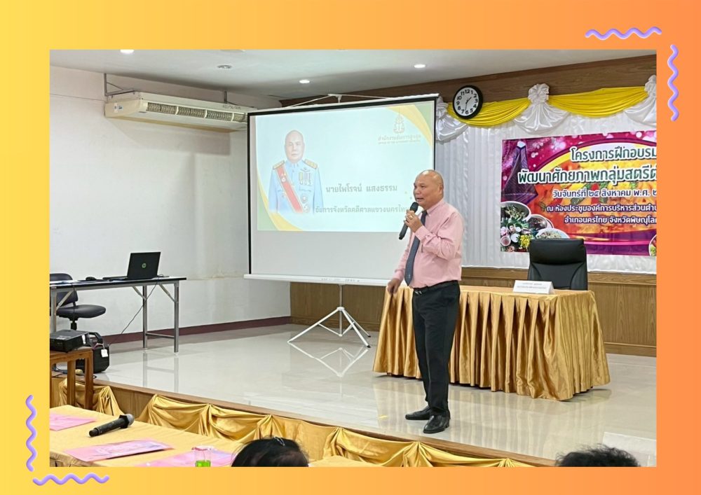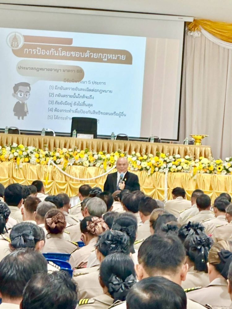นายไพโรจน์ แสงธรรม อัยการจังหวัดคดีศาลแขวงนครไทย บรรยายพิเศษ หัวข้อ “ลักษณะการป้องกันตัวที่สมควรแก่เหตุ” ให้แก่กำนัน ผู้ใหญ่บ้าน ณ ห้องประชุมศูนย์ประสานแผนพัฒนาท้องถิ่นประจำอำเภอนครไทย