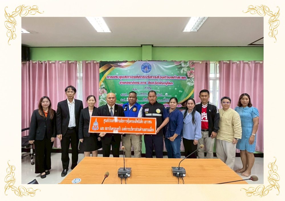 อำนาจหน้าที่และหารือปัญหาอุปสรรคในการปฏิบัติงานเกี่ยวกับศูนย์ฯ และได้มอบป้ายประจำศูนย์ประสานงานอัยการคุ้มครองสิทธิเด็กฯ เพื่อประชาสัมพันธ์ให้ประชาชนได้เข้าถึงการบริการประชาชนต่อไป