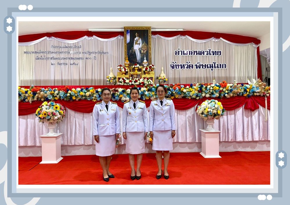 นางสาวอรวรรณ ศิริพันธ์ ตำแหน่ง อัยการประจำกอง ร่วมกิจกรรมเฉลิมพระเกียรติพระบาทสมเด็จพระปรเมนทรมหาอานันทมหิดล พระอัฐมรามาธิบดินทร เนื่องในโอกาสวันพระบรมราชสมภพ ครบ 100 ปี ณ ศูนย์ประสานแผนพัฒนาท้องถิ่นประจำอำเภอนครไทย