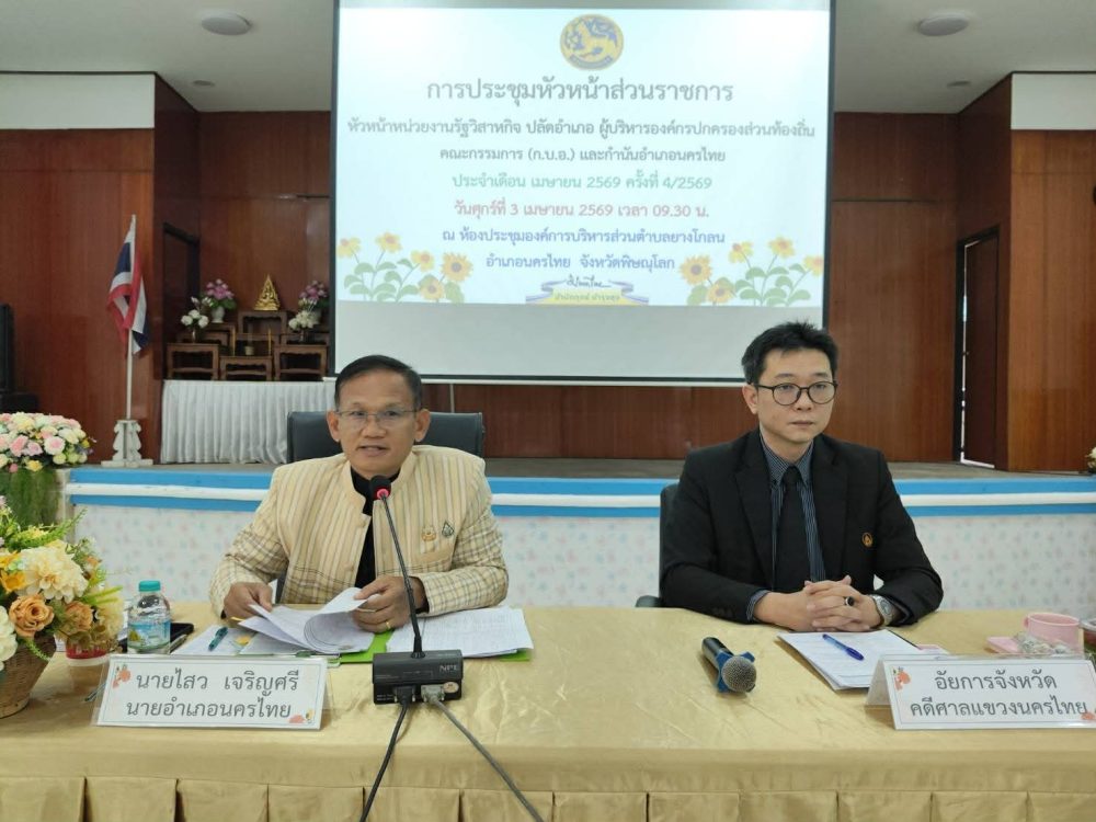 นายณัฐพงศ์ ชิณประทีป อัยการจังหวัดคดีศาลแขวงนครไทย เข้าร่วมประชุมหัวหน้าส่วนราชการ ประจำเดือนเมษายน 2569 ณ ห้องประชุมองค์การบริหารส่วนตำบลยางโกลน