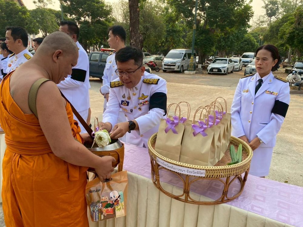 วันอาทิตย์ที่ ๗ ธันวาคม ๒๕๖๘ เวลา ๐๖.๓๐ น. นางสาวสิรินาท บางสมบุญ อัยการจังหวัดคดีเยาวชนและครอบครัวจังหวัดพิจิตร มอบหมายให้ พ.ต.ต.มนูญศักดิ์ ทองรุ่ง พร้อมด้วยคณะ เข้าร่วมพิธีเจริญพระพุทธมนต์และทำบุญตักบาตรถวายพระราชกุศล ณ ห้องประชุมโรงเรียนหลวงพ่อเพชร วัดท่าหลวง พระอารามหลวง อำเภอเมือง จังหวัดพิจิตร