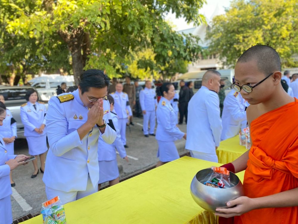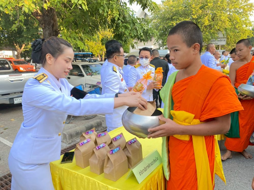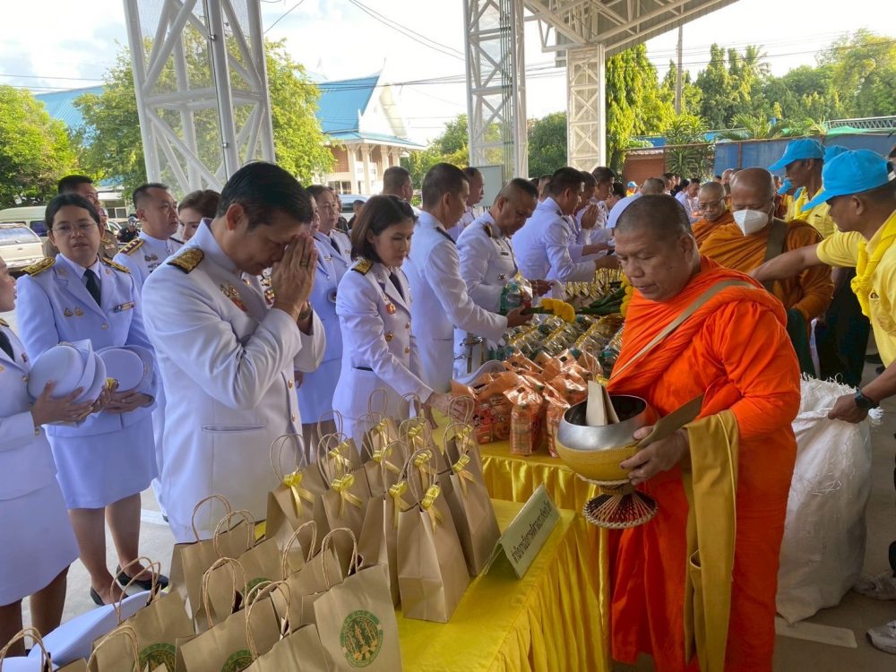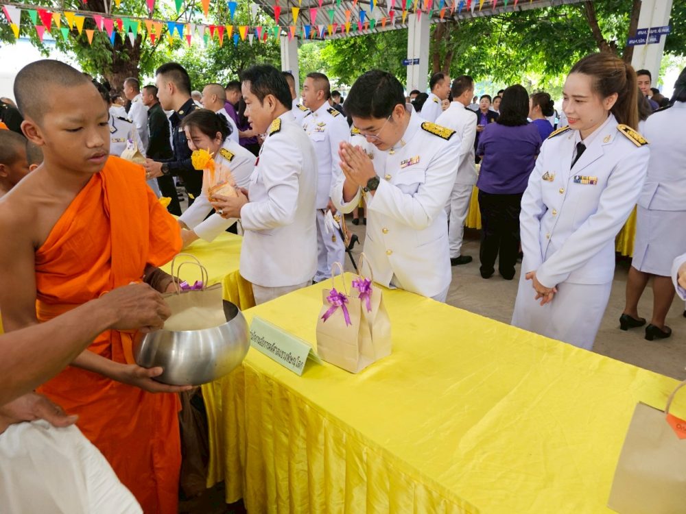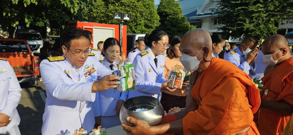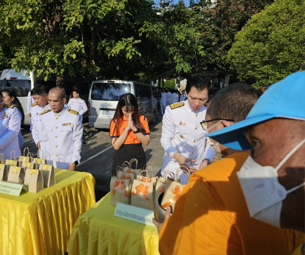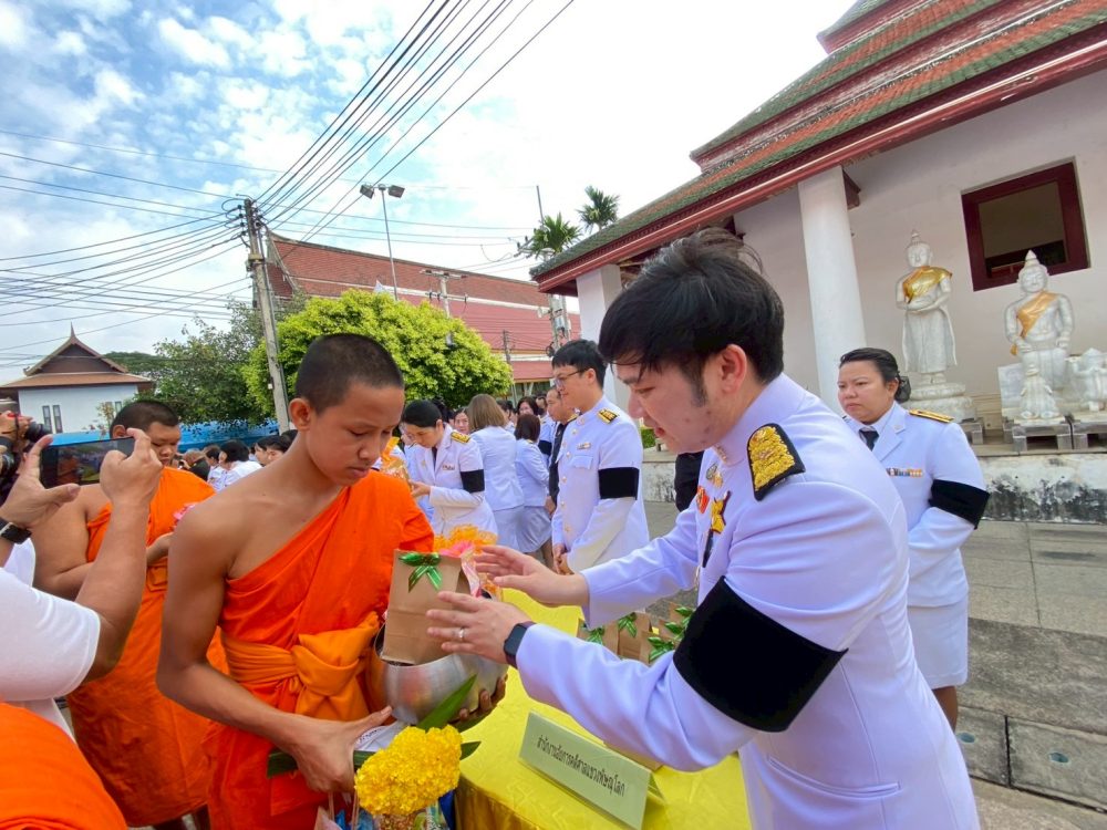ทำบุญตักบาตรถวายพระราชกุศล และพิธีวางพานพุ่มดอกไม้ถวายราชสักการะ”