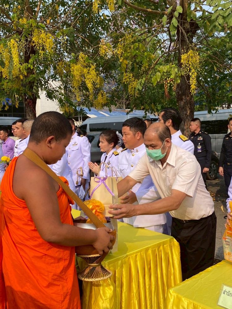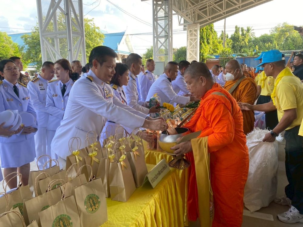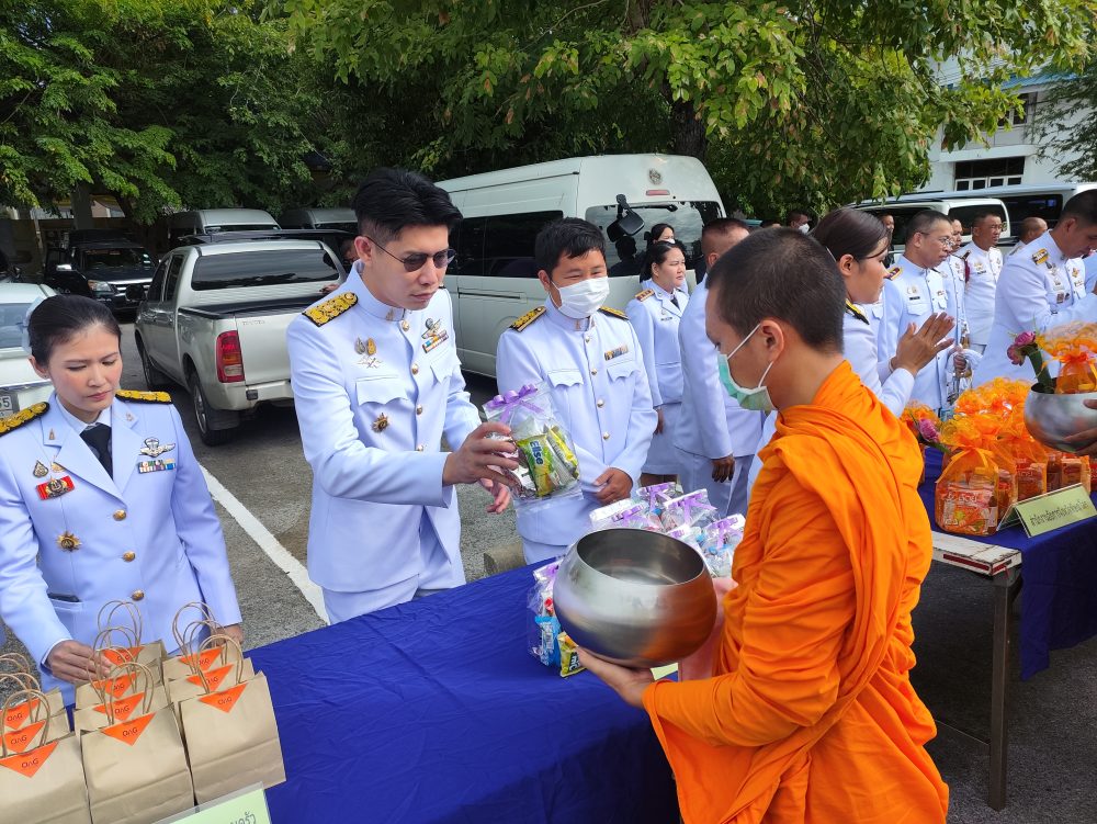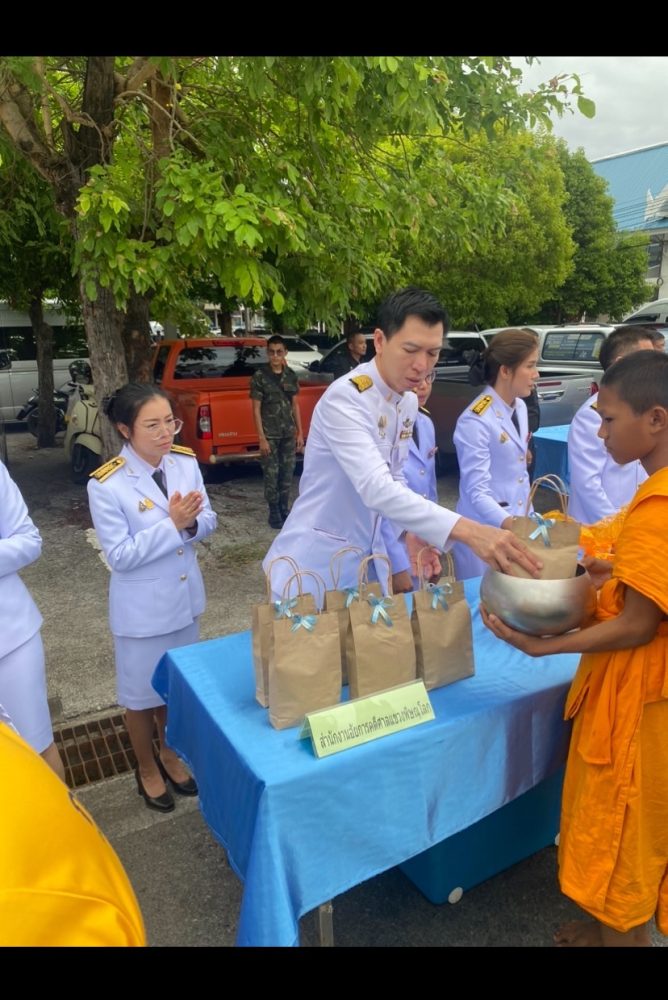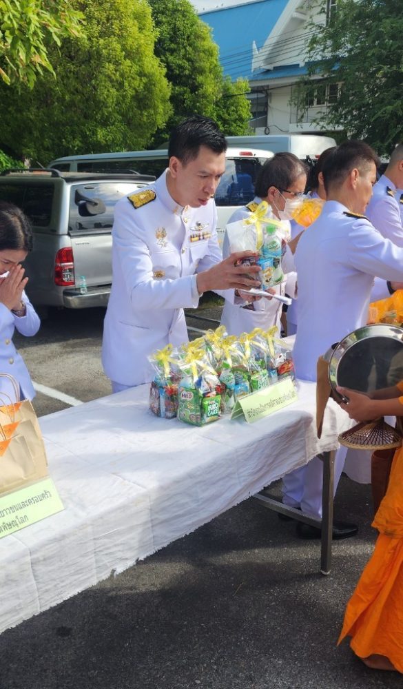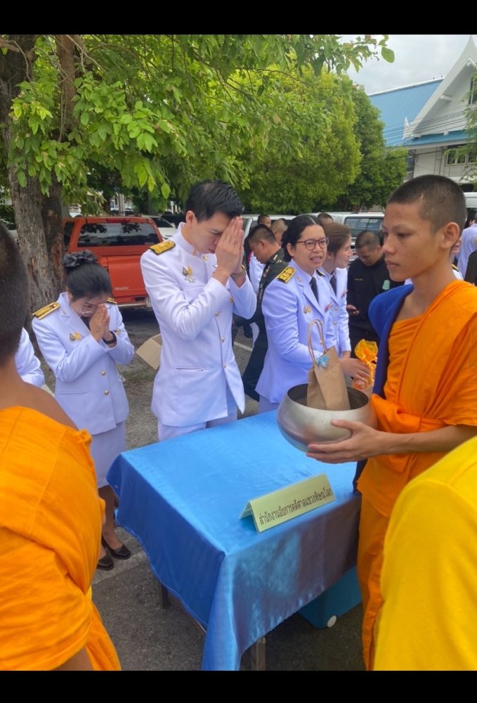ทำบุญตักบาตรถวายพระราชกุศล และพิธีวางพานพุ่มดอกไม้ถวายราชสักการะ”