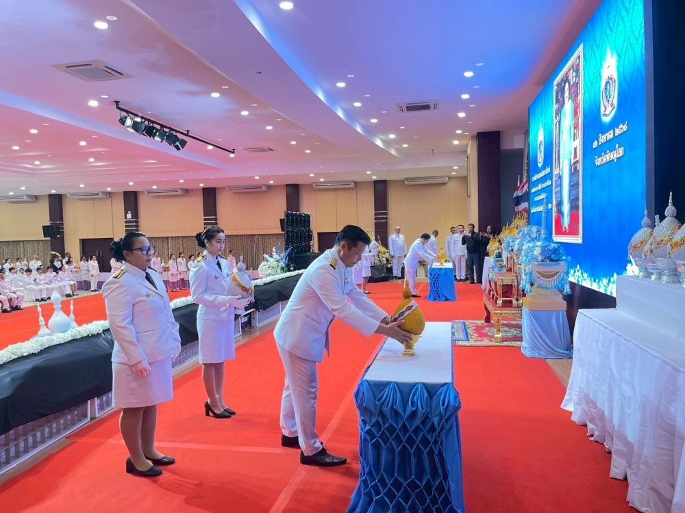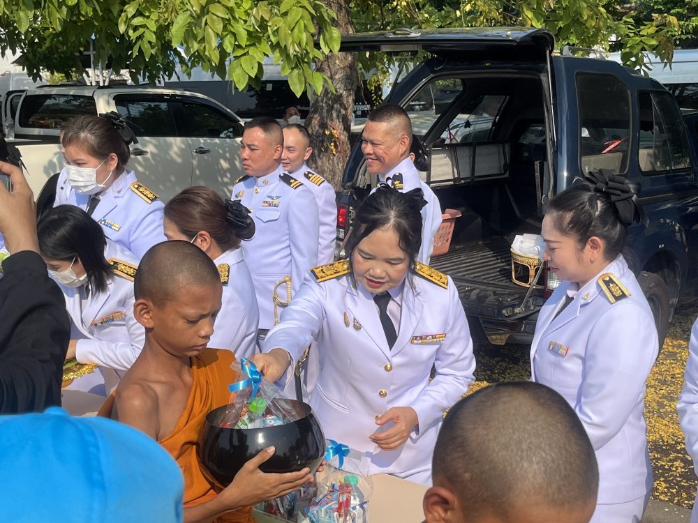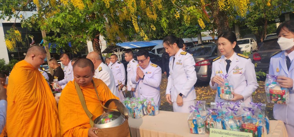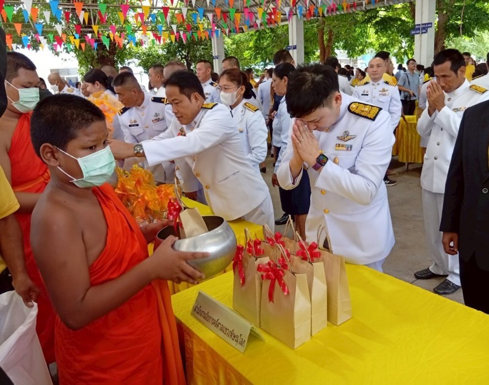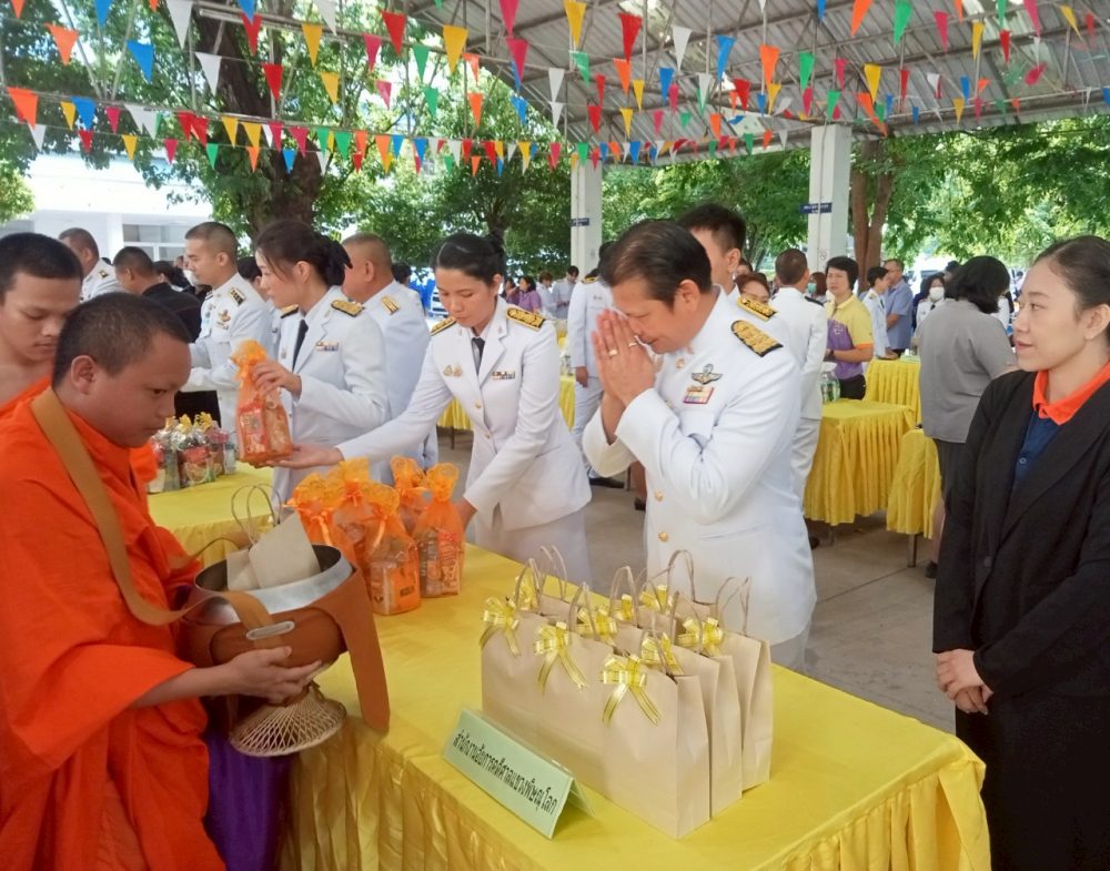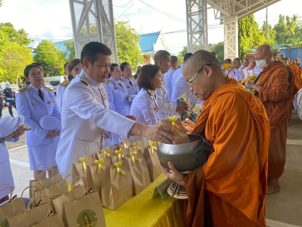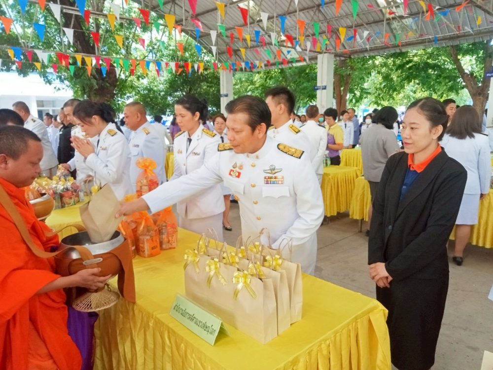 ทำบุญตักบาตรถวายพระราชกุศล และพิธีวางพานพุ่มดอกไม้ถวายราชสักการะ”