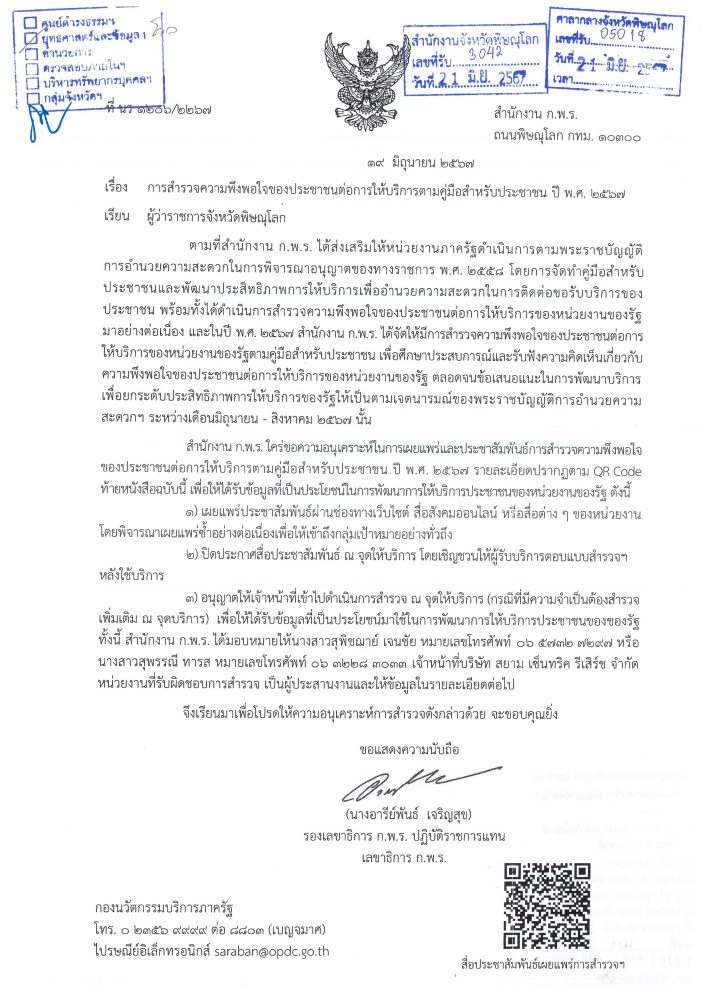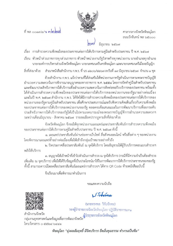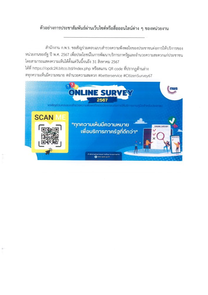 การสำรวจความพึงพอใจของประชาชนต่อการให้บริการตามคู่มือสำหรับประชาชน ปี พ.ศ. 2567