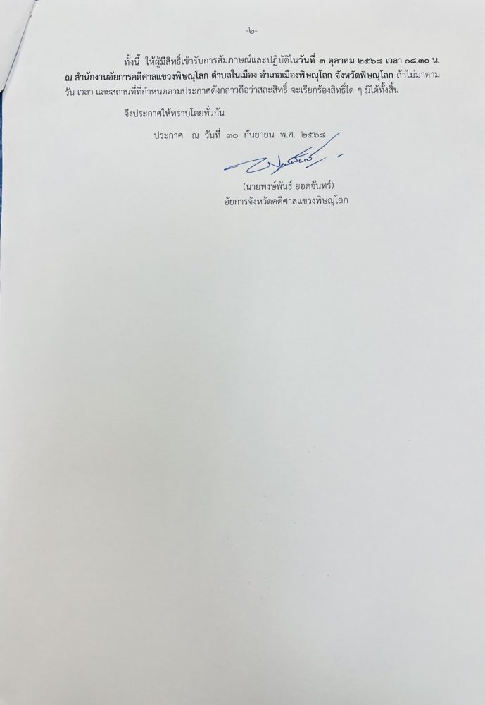 วัน อังคาร ที่ 12 สิงหาคม 2568 เวลา 17.00 น.นายพงษ์พันธ์ ยอดจันทร์ อัยการจังหวัดคดีศาลแขวงพิษณุโลก
