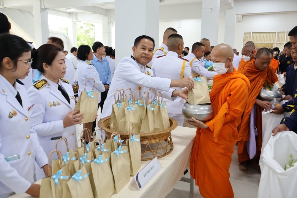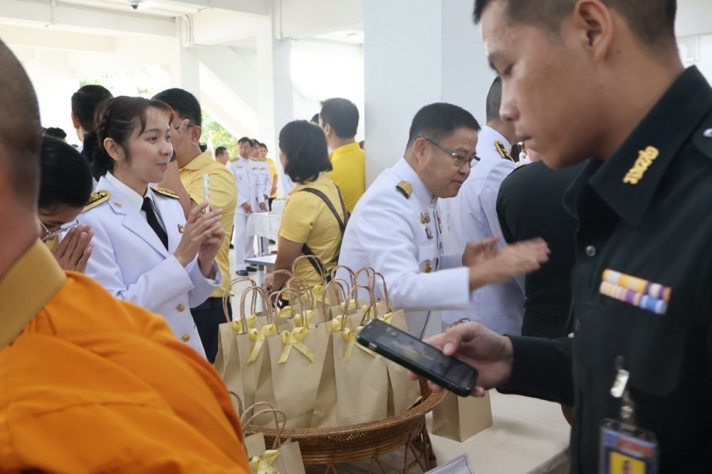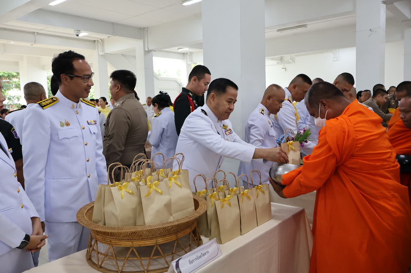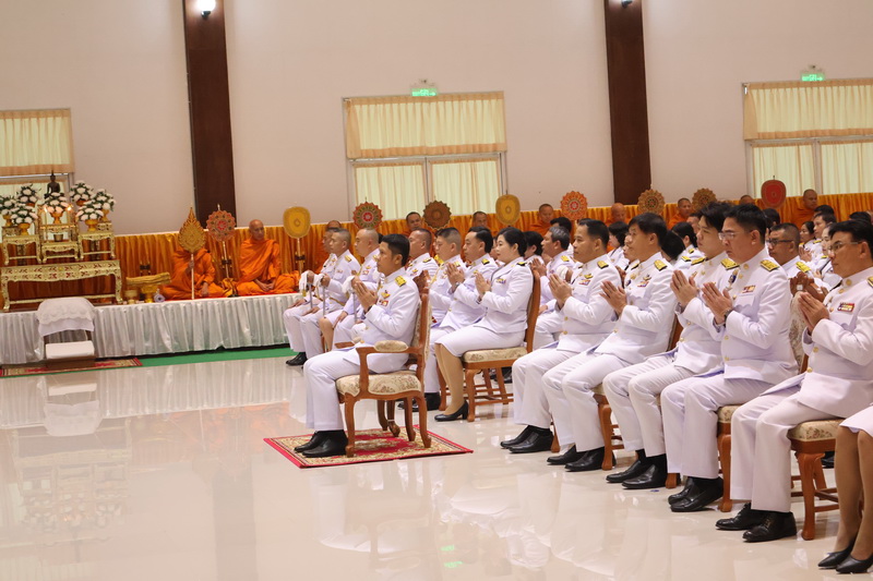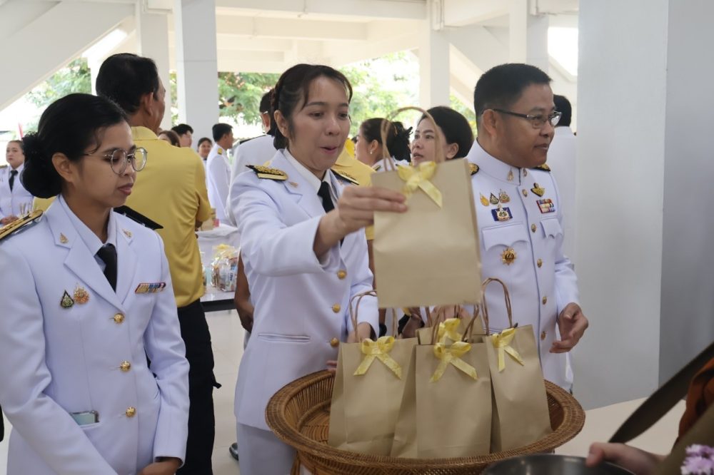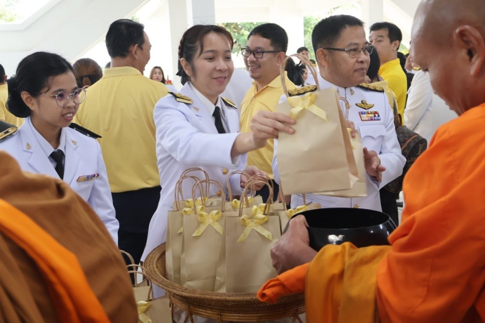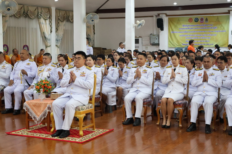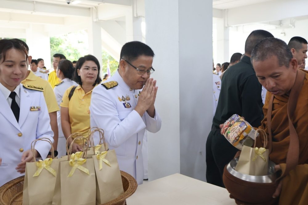 เข้าร่วมพิธีเจริญพระพุทธมนต์ ทำบุญตักบาตรข้าวสารอาหารแห้งแด่พระสงฆ์ ถวายพระราชกุศลเฉลิมพระเกียรติ