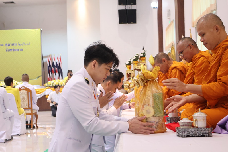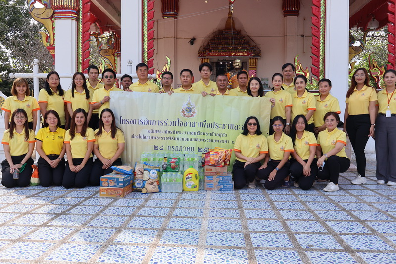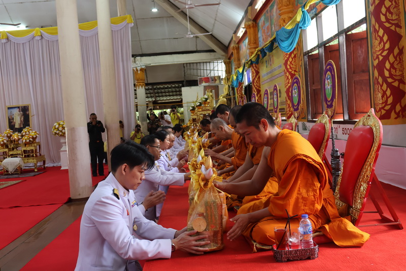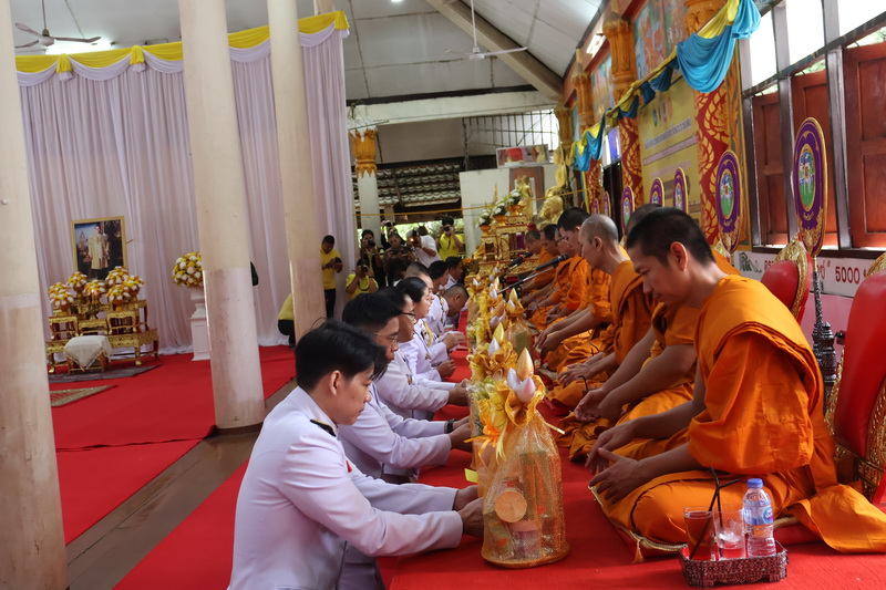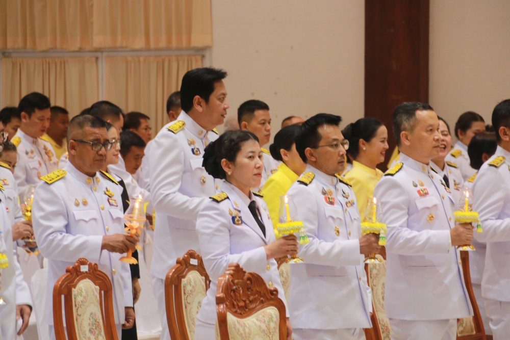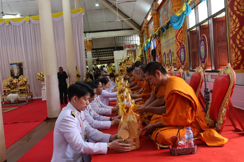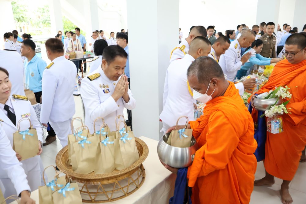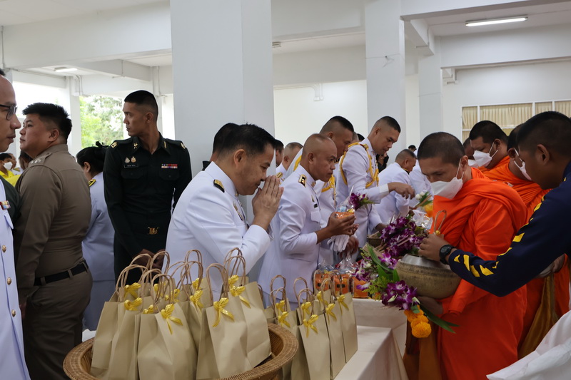 เข้าร่วมพิธีเจริญพระพุทธมนต์ ทำบุญตักบาตรข้าวสารอาหารแห้งแด่พระสงฆ์ ถวายพระราชกุศลเฉลิมพระเกียรติ