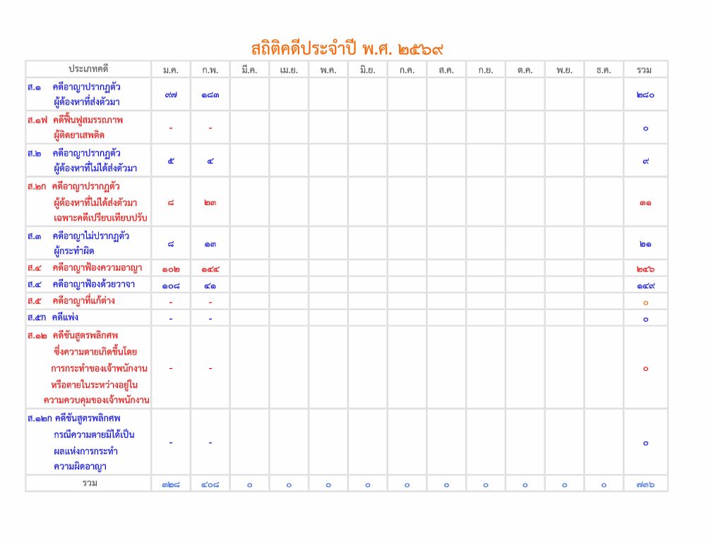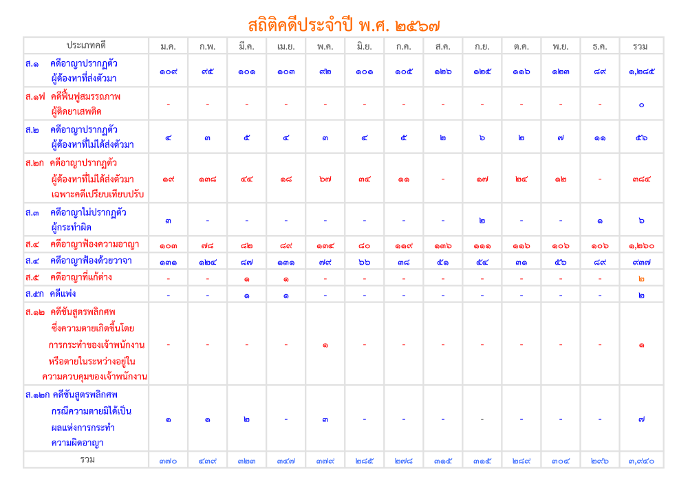 สถิติคดี สำนักงานอัยการจังหวัดตาก