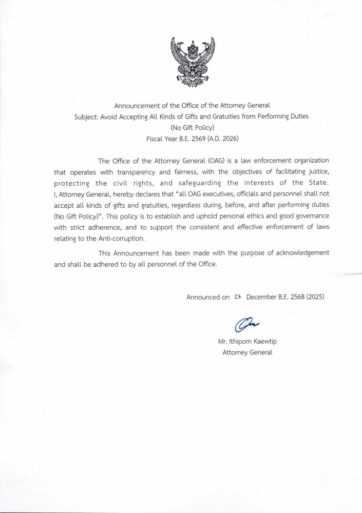 วันจันทร์ที่ 12 มกราคม 2569 สำนักงานอัยการจังหวัดตาก