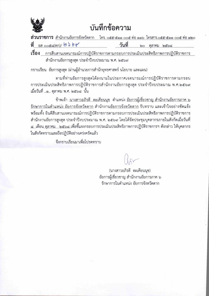 วันที่ 26 ตุลาคม 2568 เวลา 14.00 น. นางสาวอภิรดี ตะเคียนนุช อัยการจังหวัดตากพร้อมคณะ
