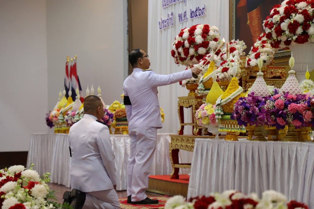 พิธีถวายเครื่องราชสักการะ วางพานพุ่ม และพิธีจุดเทียนถวายพระพรชัยมงคล