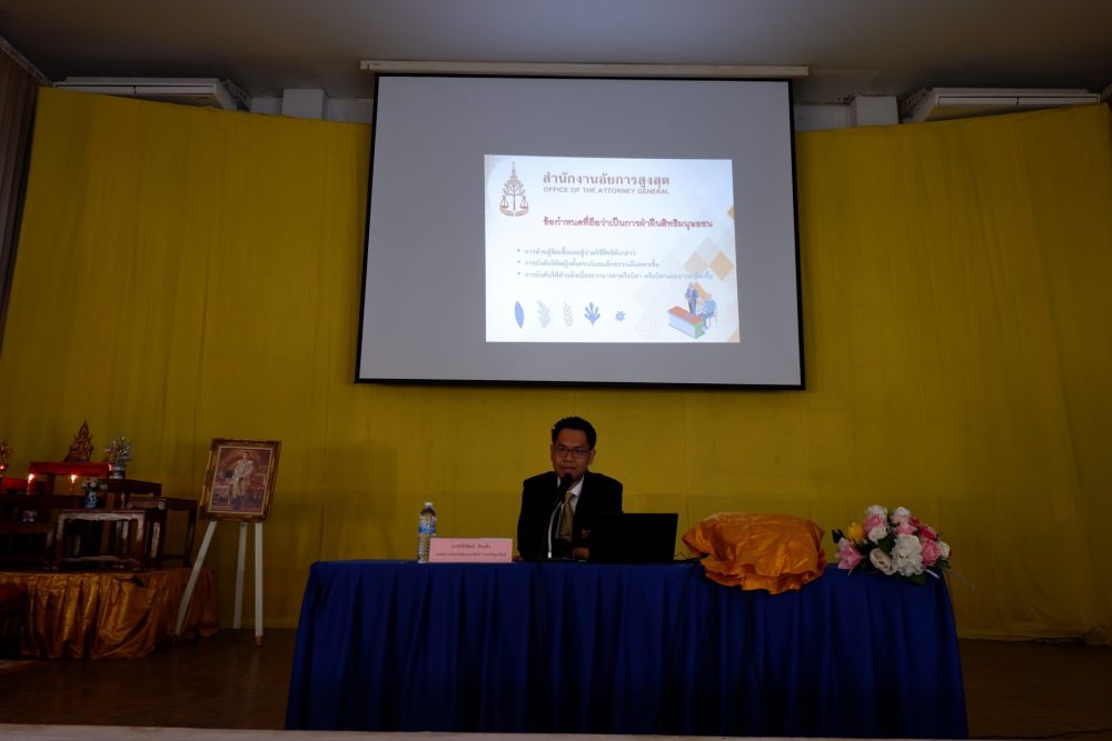 เป็นวิทยากรบรรยาย “โครงการฝึกอบรมเชิงปฏิบัติการเพื่อเสริมสร้างความรู้ ความเข้าใจทางกฎหมาย และความปลอดภัยของเยาวชน”