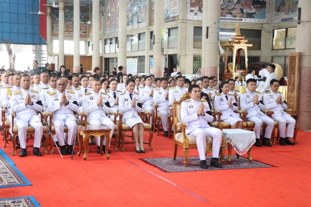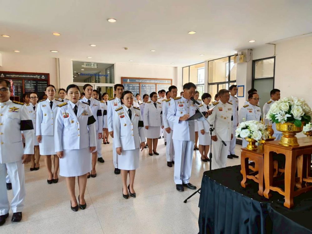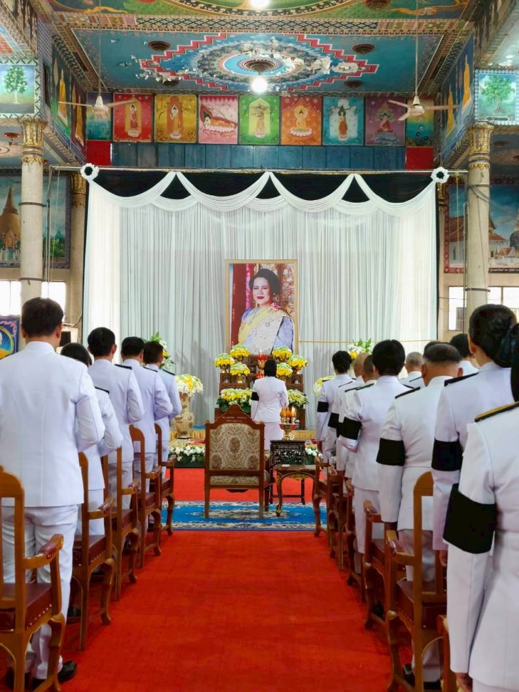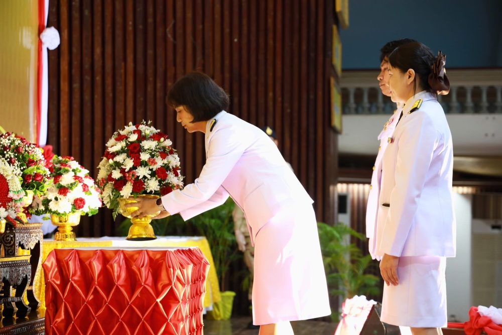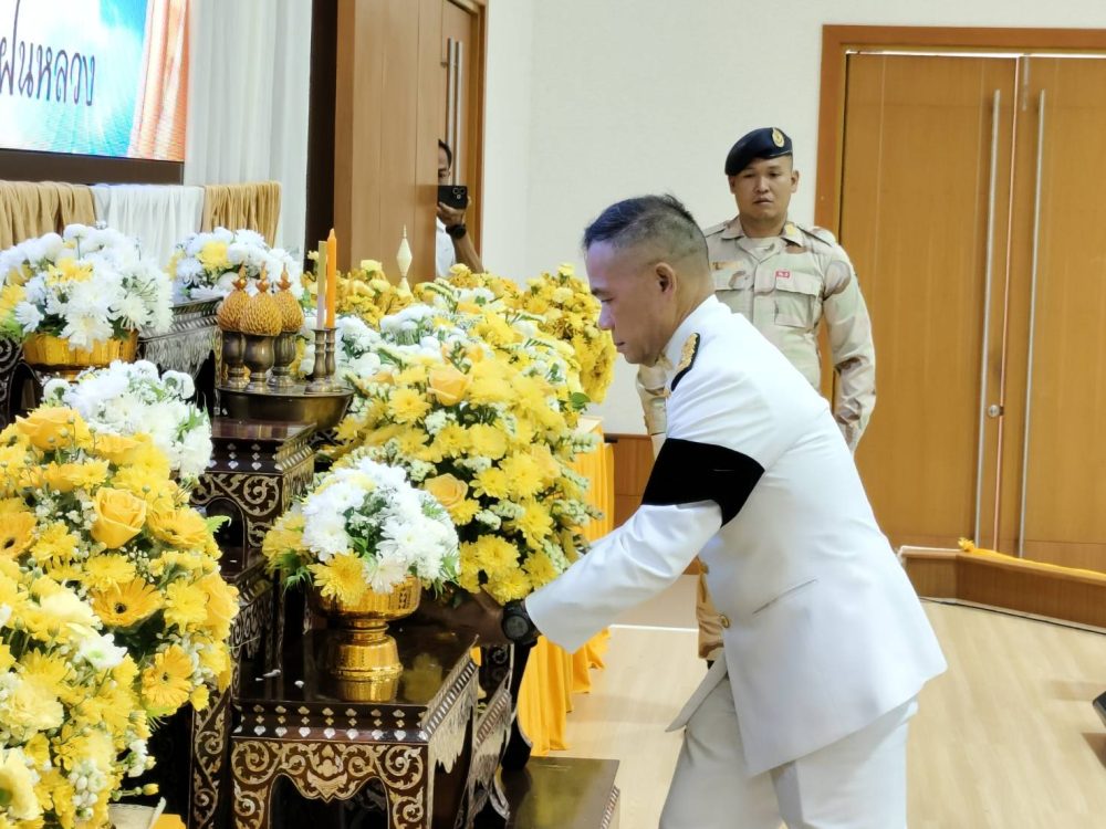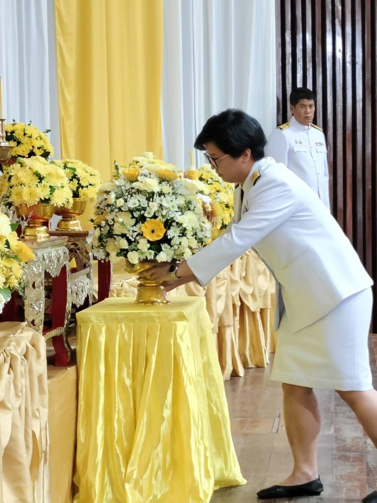 เข้าร่วมพิธีกิจกรรมพิธีสวดพระพุทธมนต์ ทำบุญตักบาตรถวายพระราชกุศล และ พิธีวางพวงมาลา