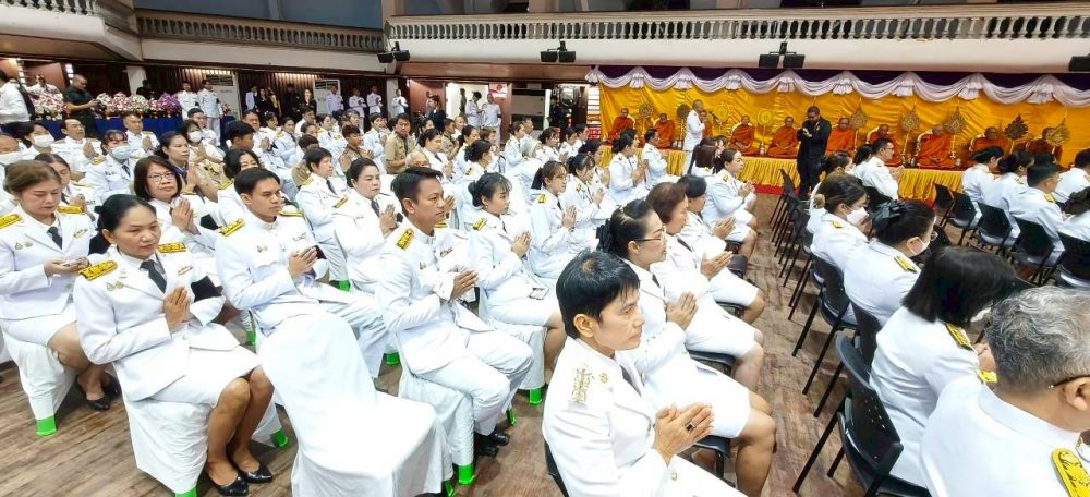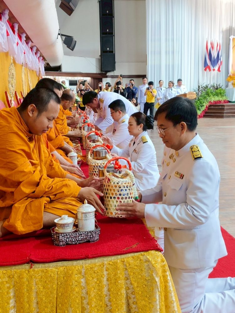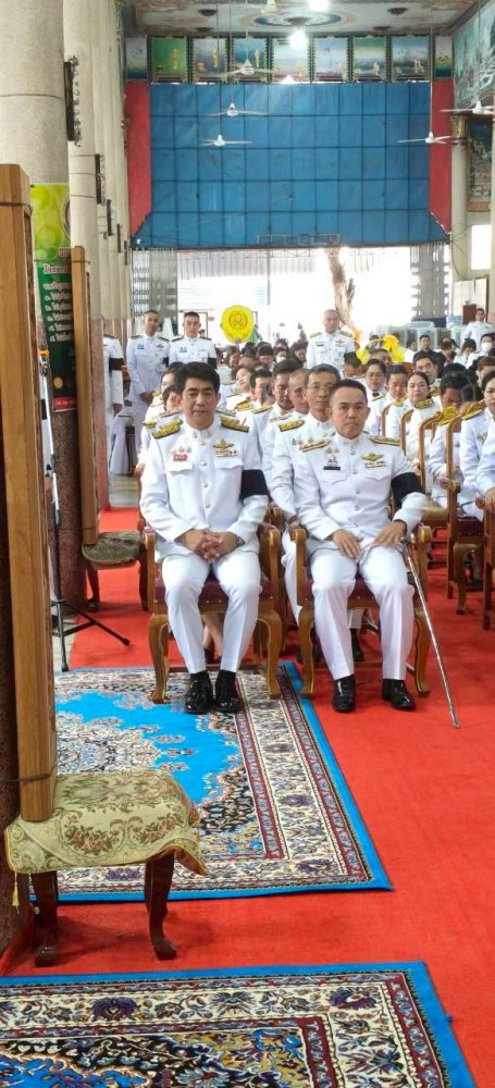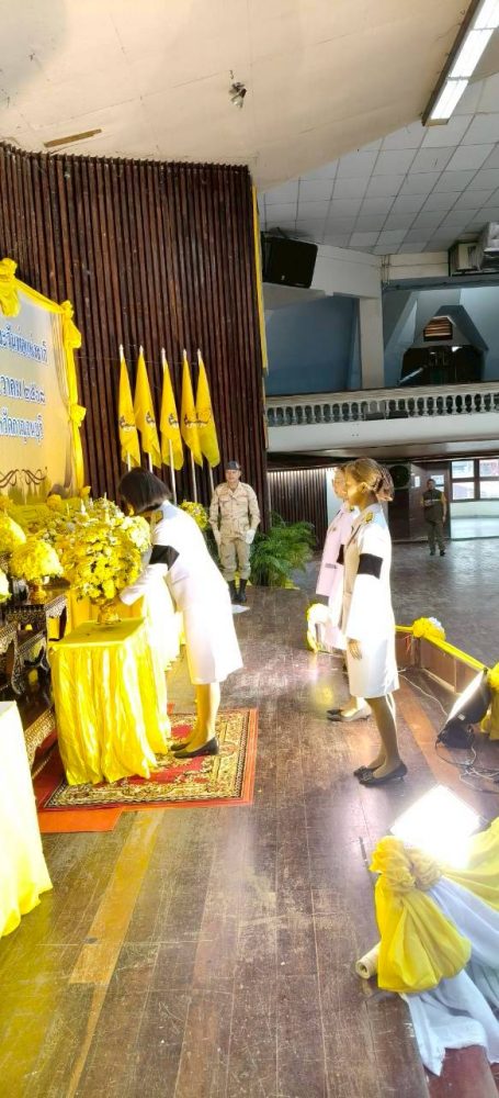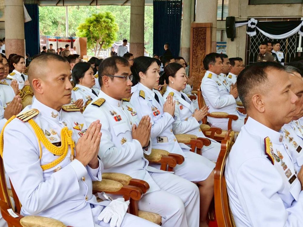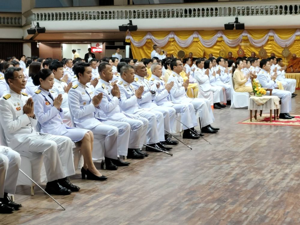 เข้าร่วมพิธีกิจกรรมพิธีสวดพระพุทธมนต์ ทำบุญตักบาตรถวายพระราชกุศล และ พิธีวางพวงมาลา