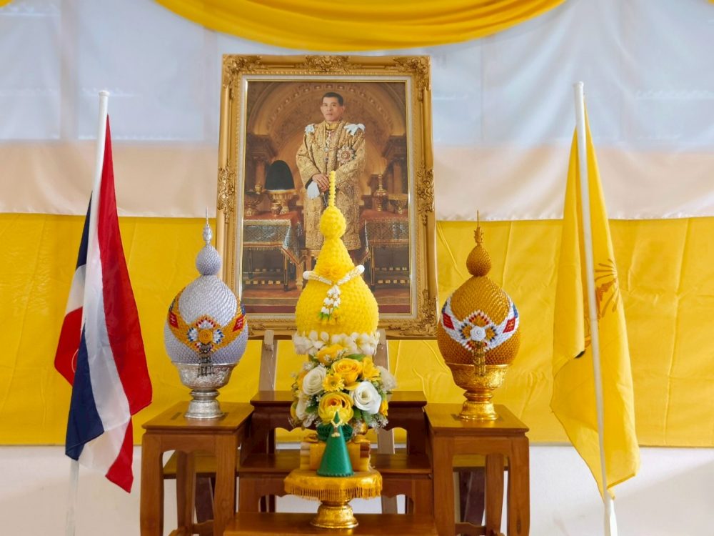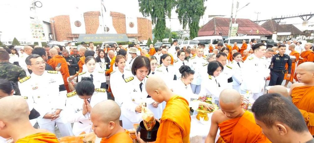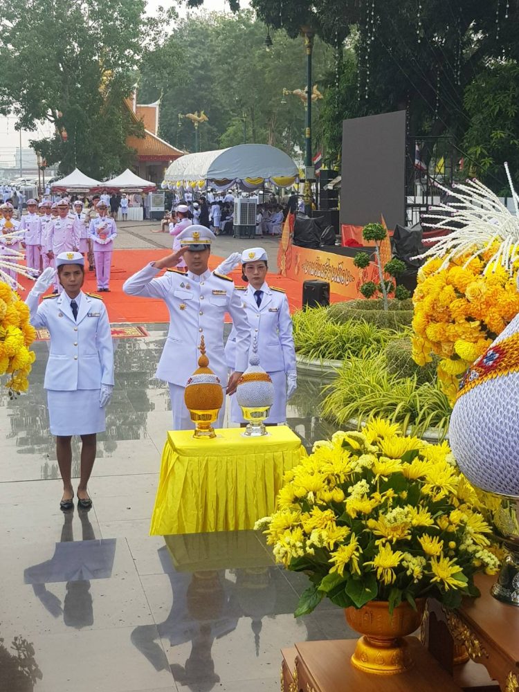 พิธีทำบุญตักบาตรถวายพระราชกุศล พิธีถวายเครื่องราชสักการะและวางพานพุ่ม