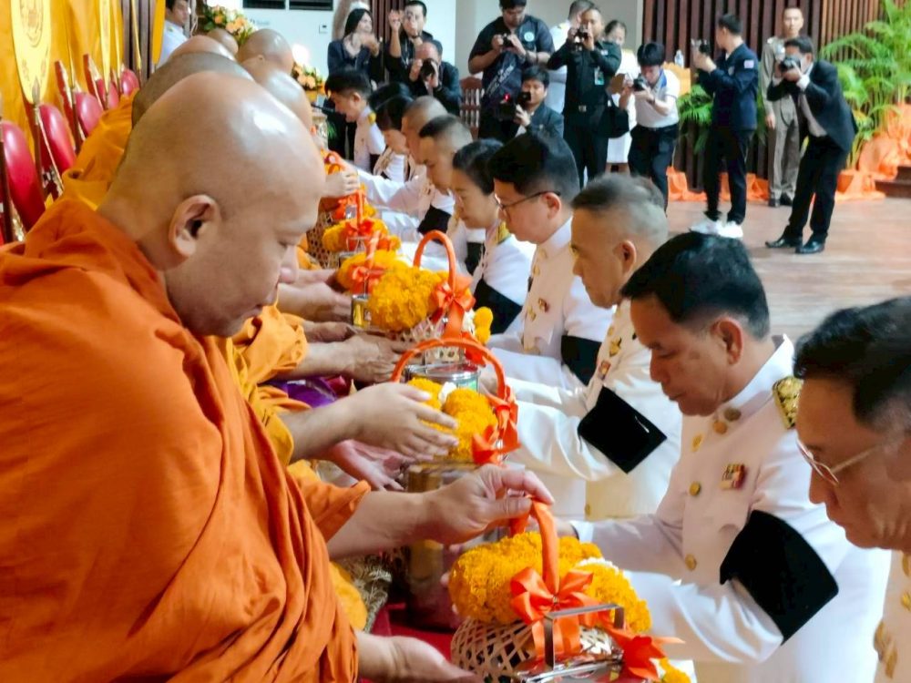 เข้าพิธีเจริญพระพุทธมนต์ และทำบุญตักบาตร เนื่องในเทศกาลวันสำคัญทางพระพุทธศาสนาวันอาสาฬหบูชา และวันเข้าพรรษา จังหวัดกาญจนบุรี ประจำปี พ.ศ. 2568